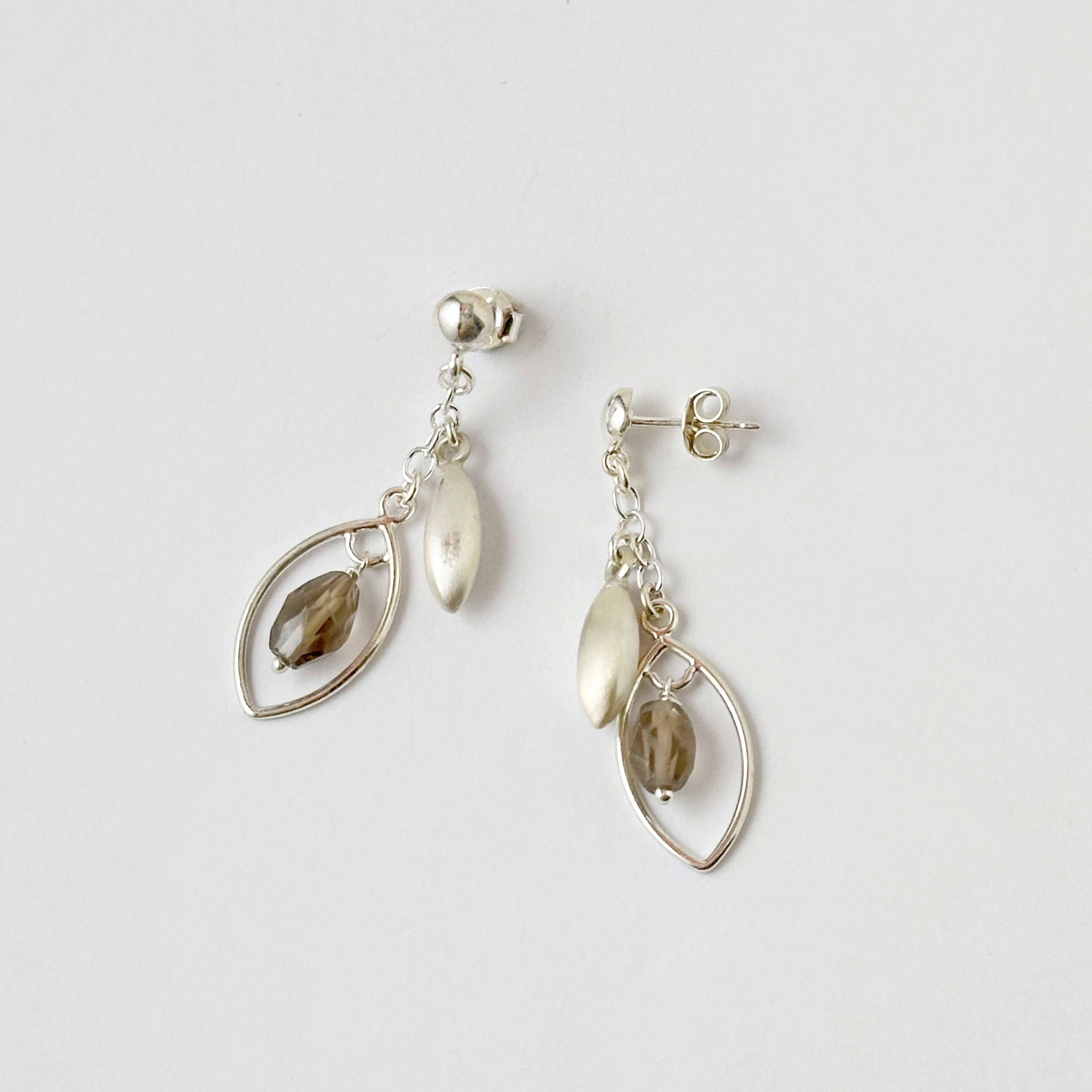 【残りわずか】スモーキークォーツ リーフ ピアス
