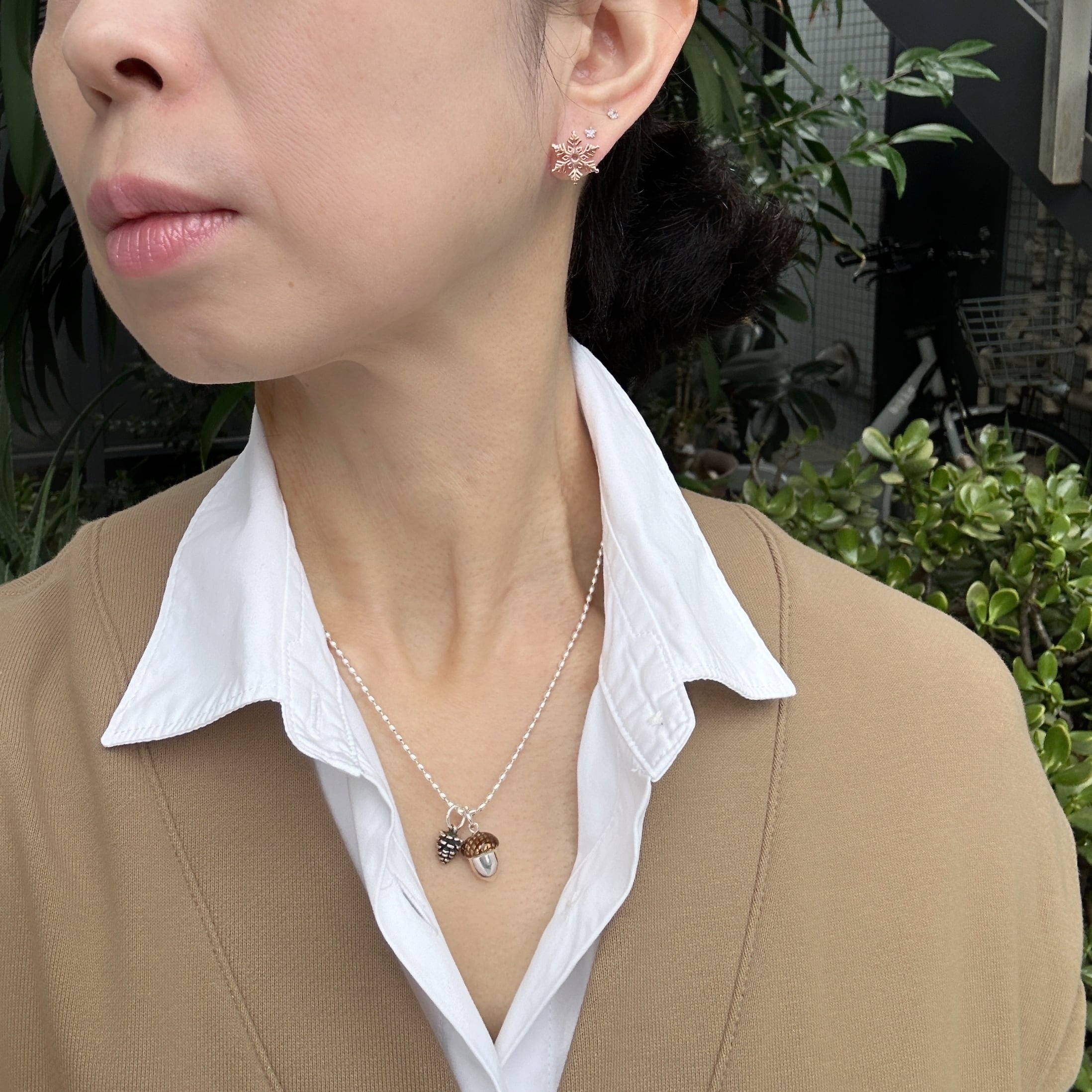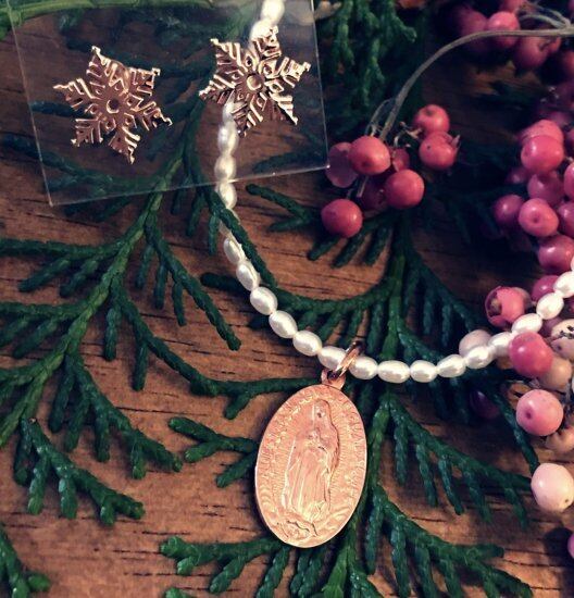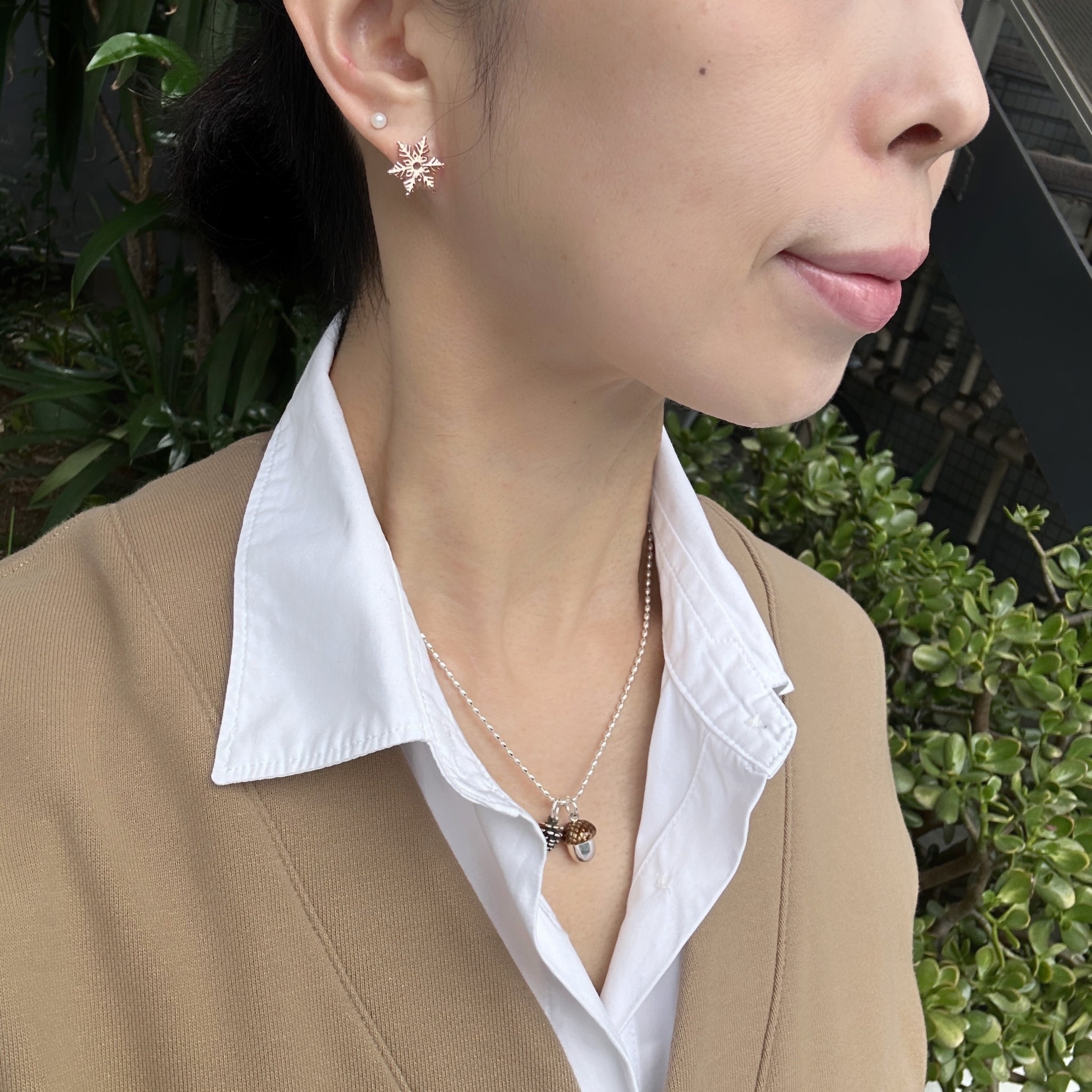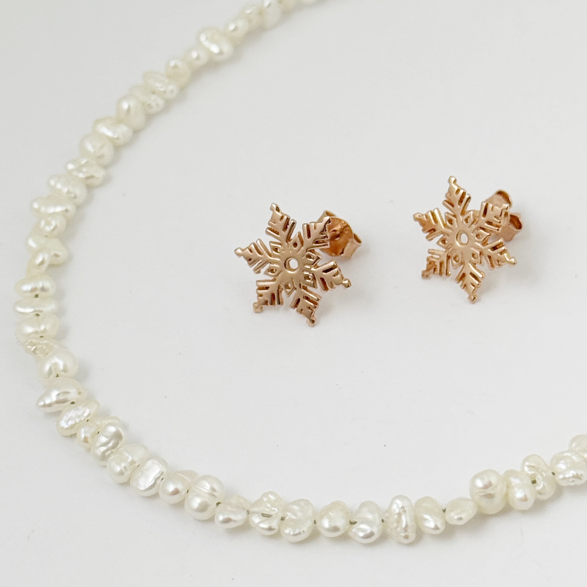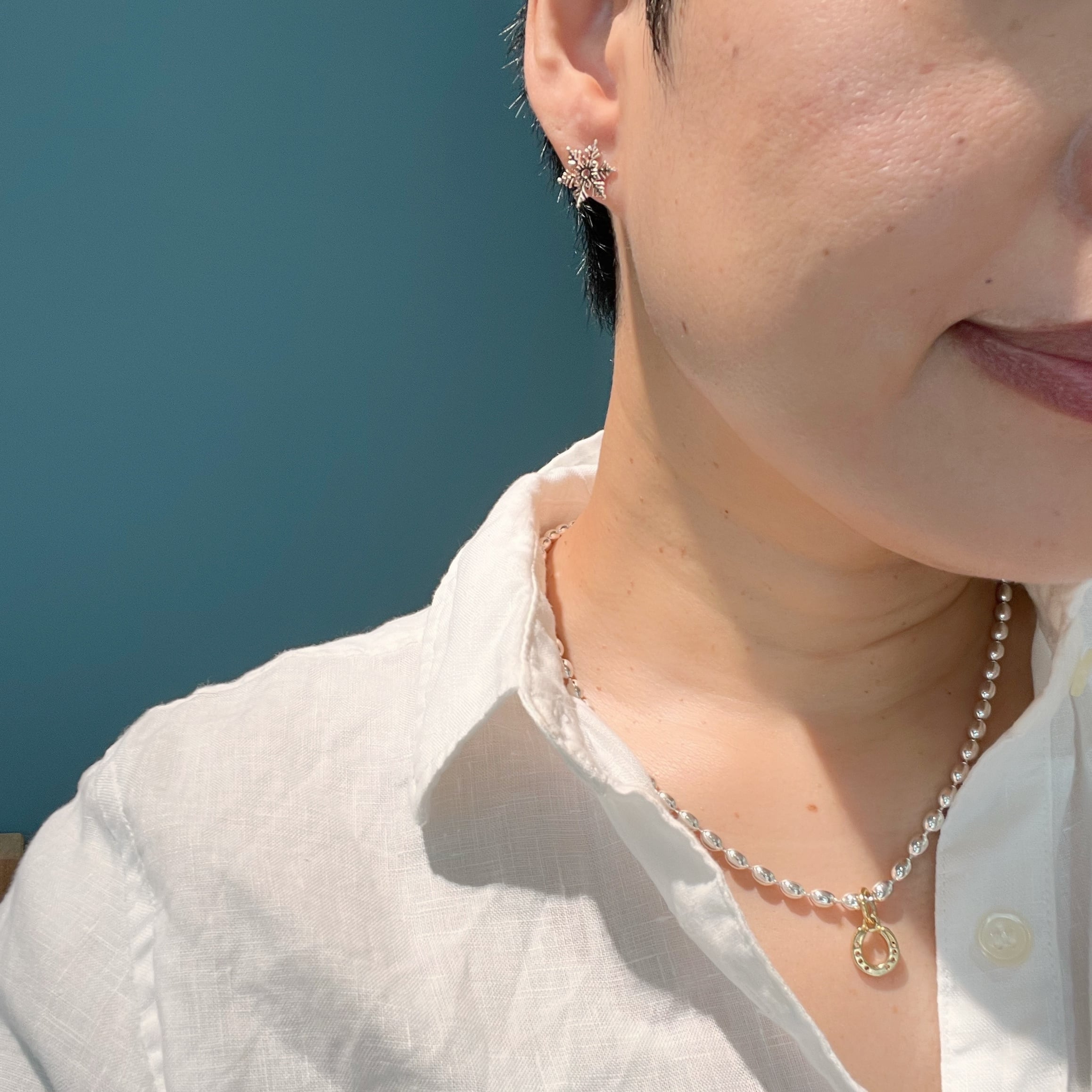 シルバーの地金にピンクゴールドコーティングのスノーピアス。