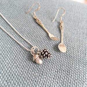マツボックリ+リトルどんぐり ネックレス 秋冬 ドングリ まつぼっくり