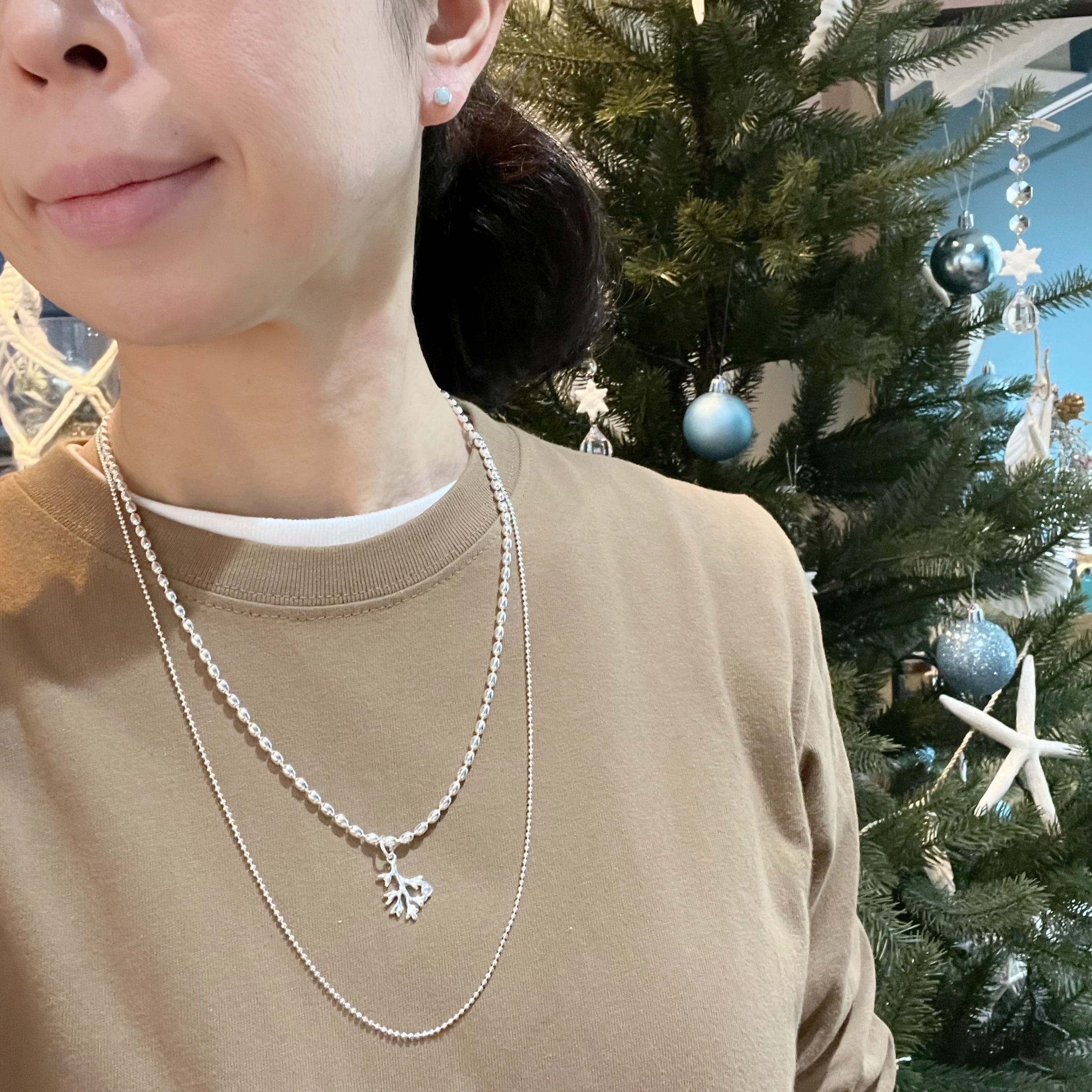 シーズンレスで使える、木にも 珊瑚にも見えるトップに雫をつけました。