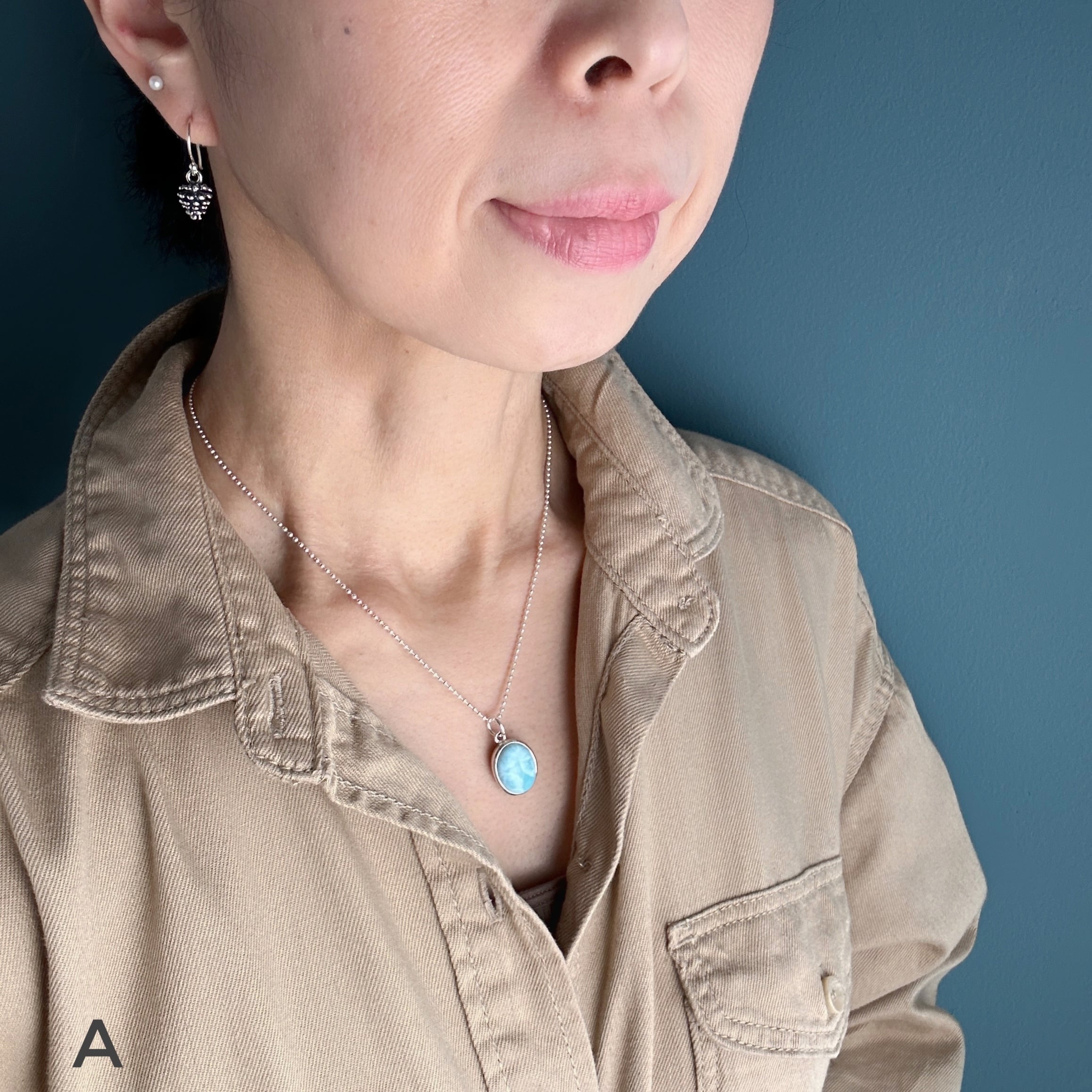 ラリマー シンプル オーバル ペンダント Mサイズ