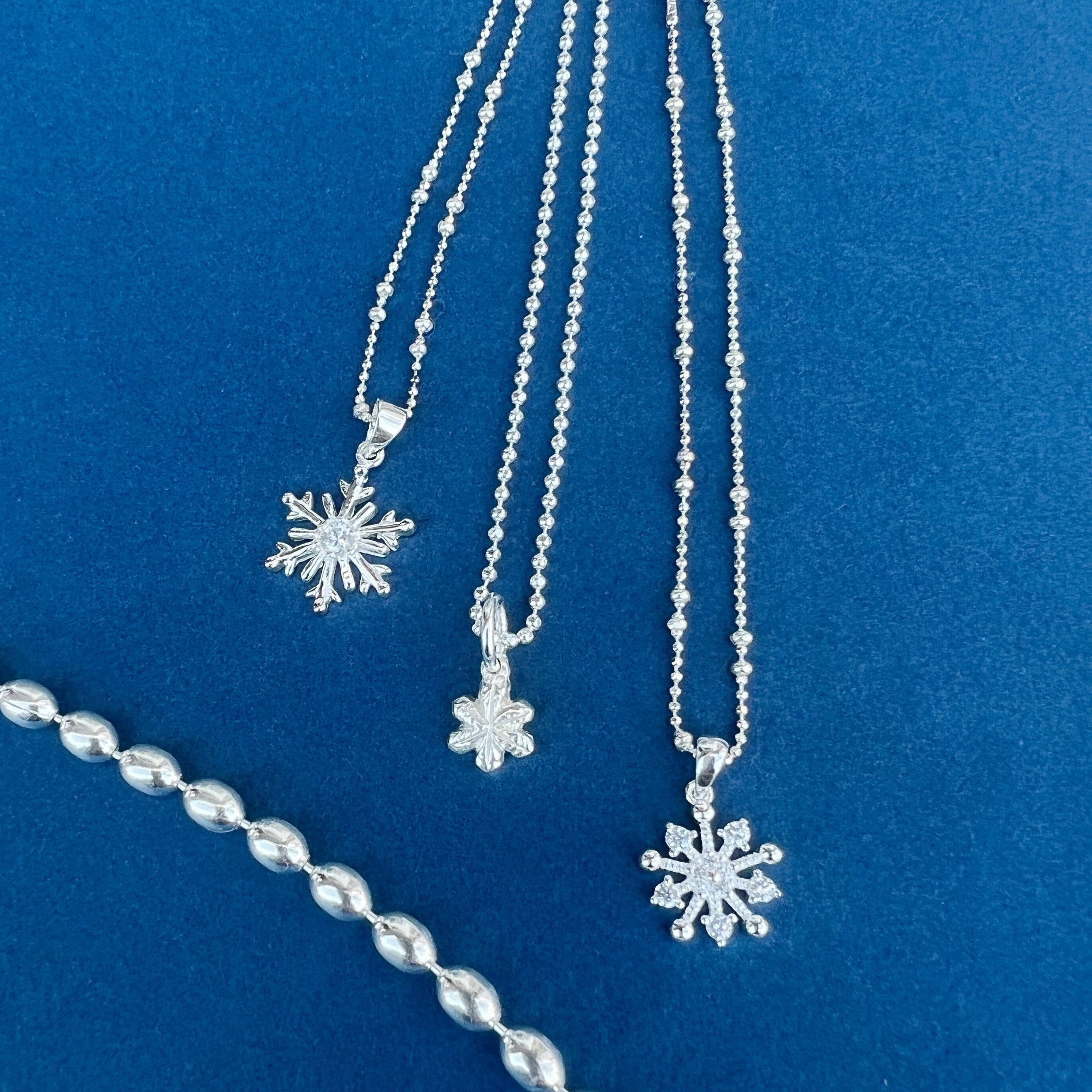 冬の装いに是非付け加えてほしい スノーネックレス。
