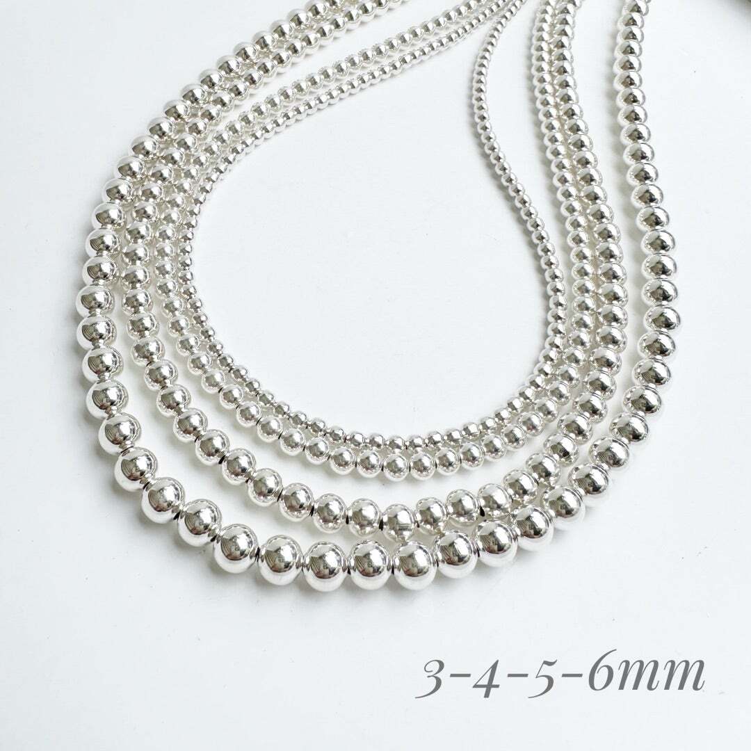 (真珠ではなく、とっても綺麗に輝くハンドメイドのシルバーボールを連ねたネックレスです。)