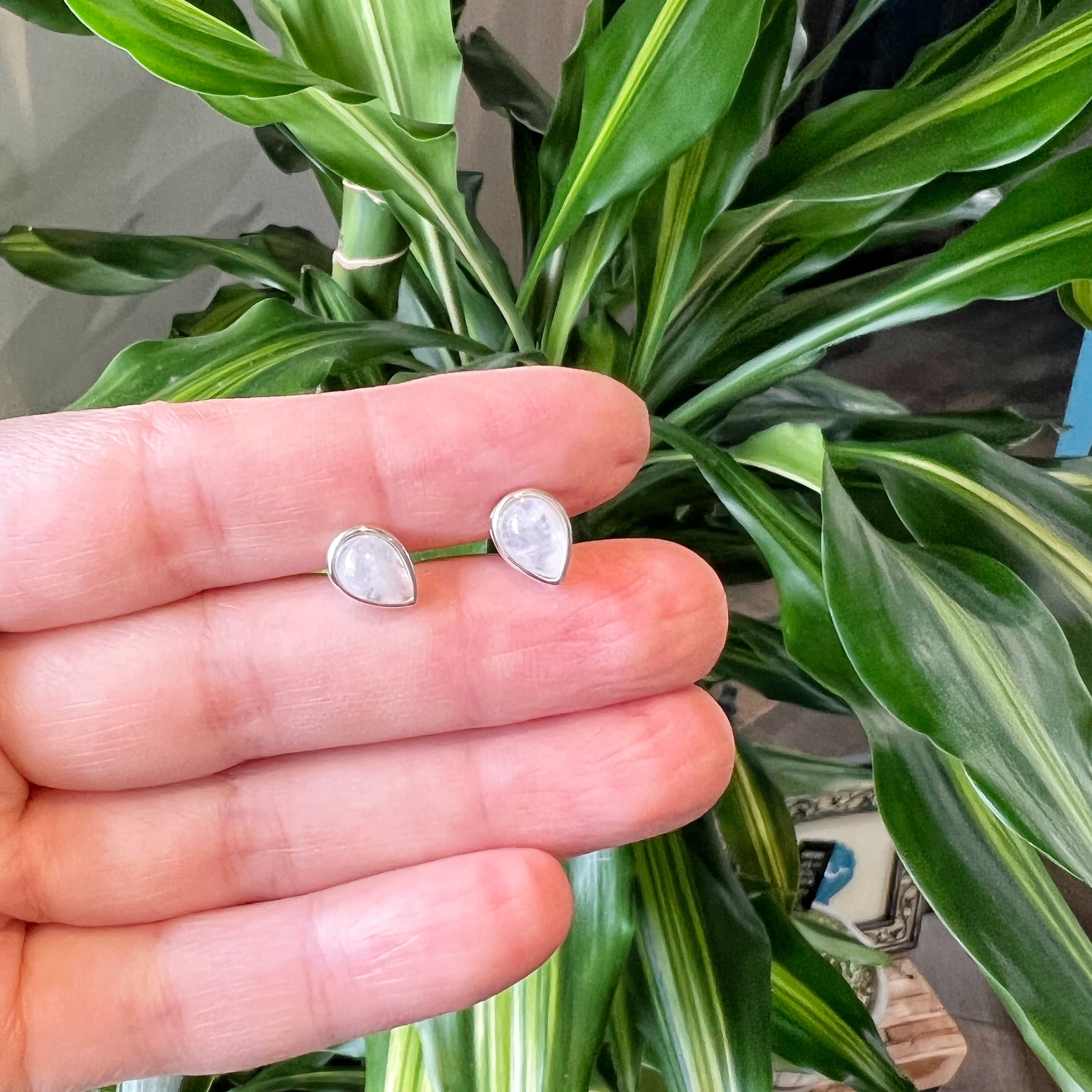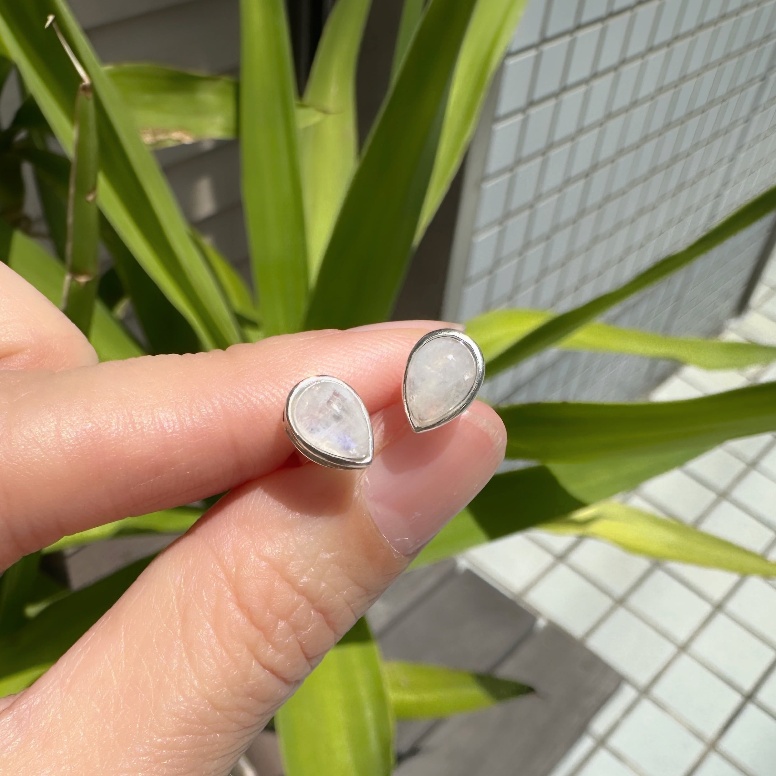 【再入荷】レインボームーンストーン スタッド ピアス ドロップ型 S size