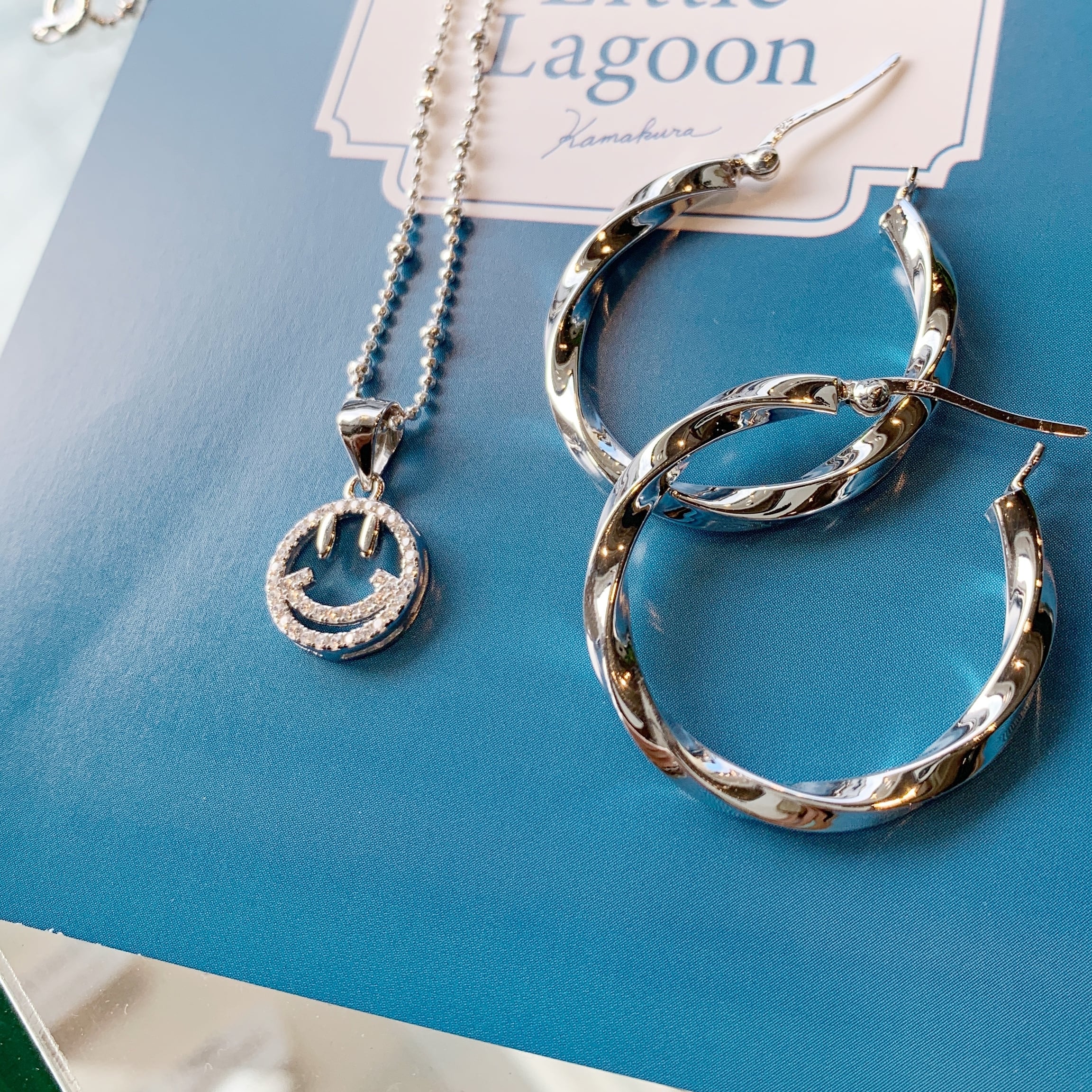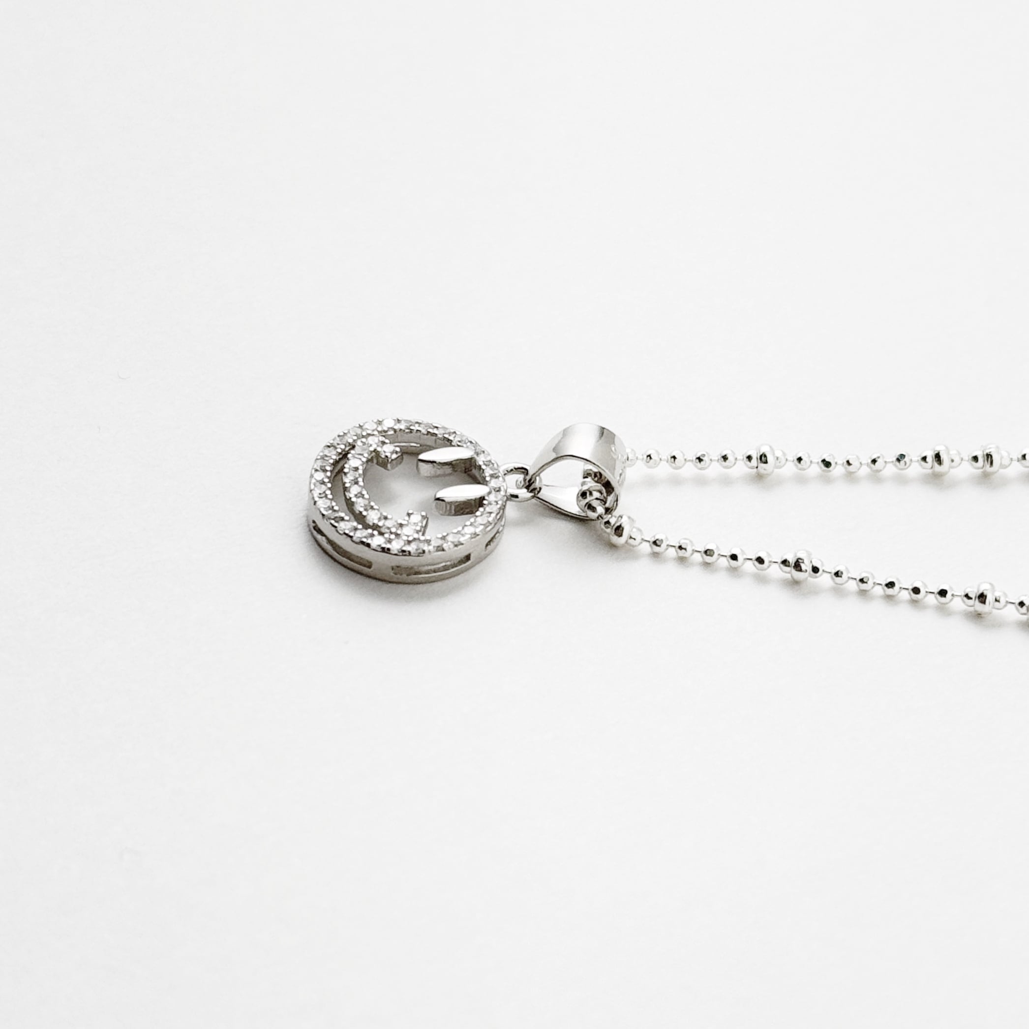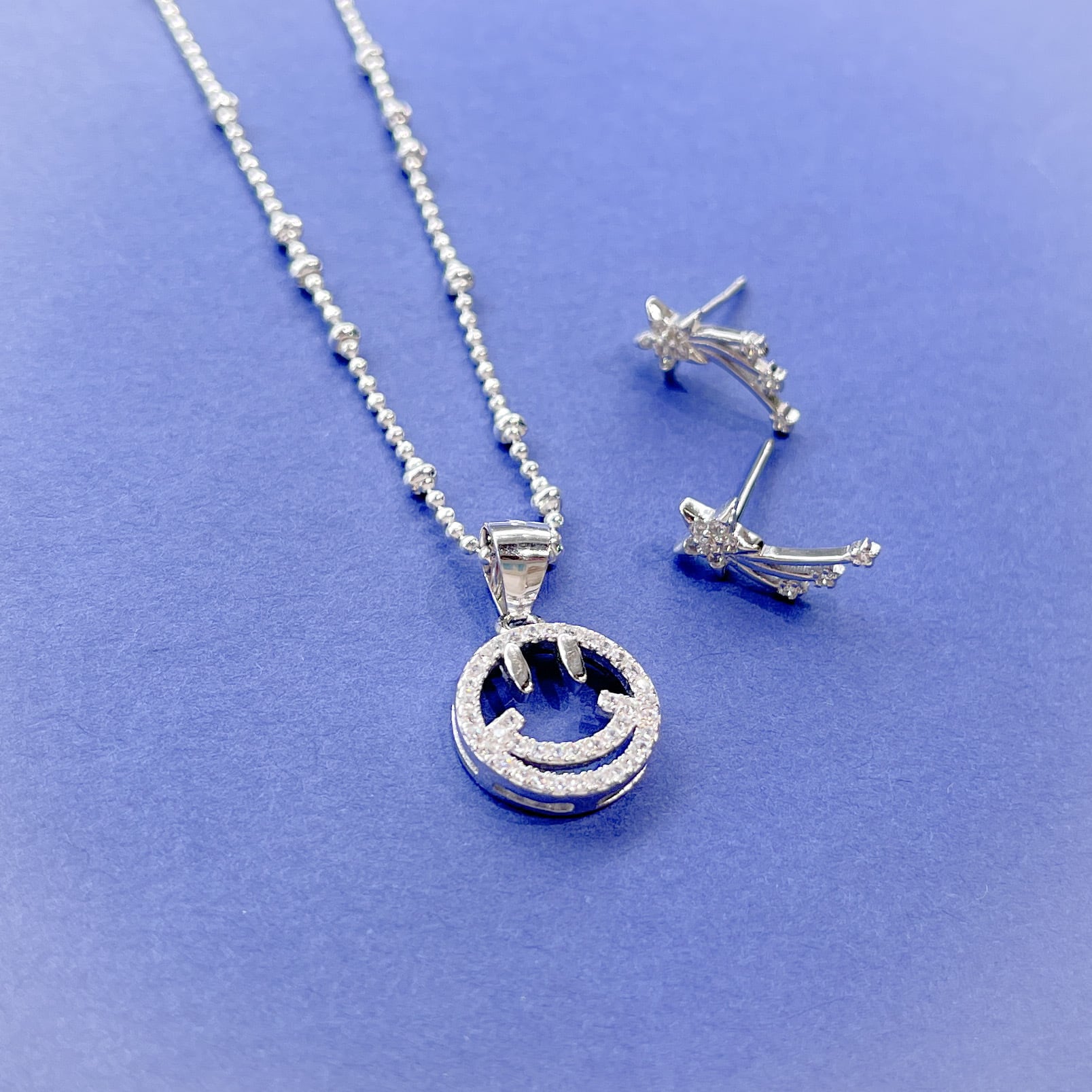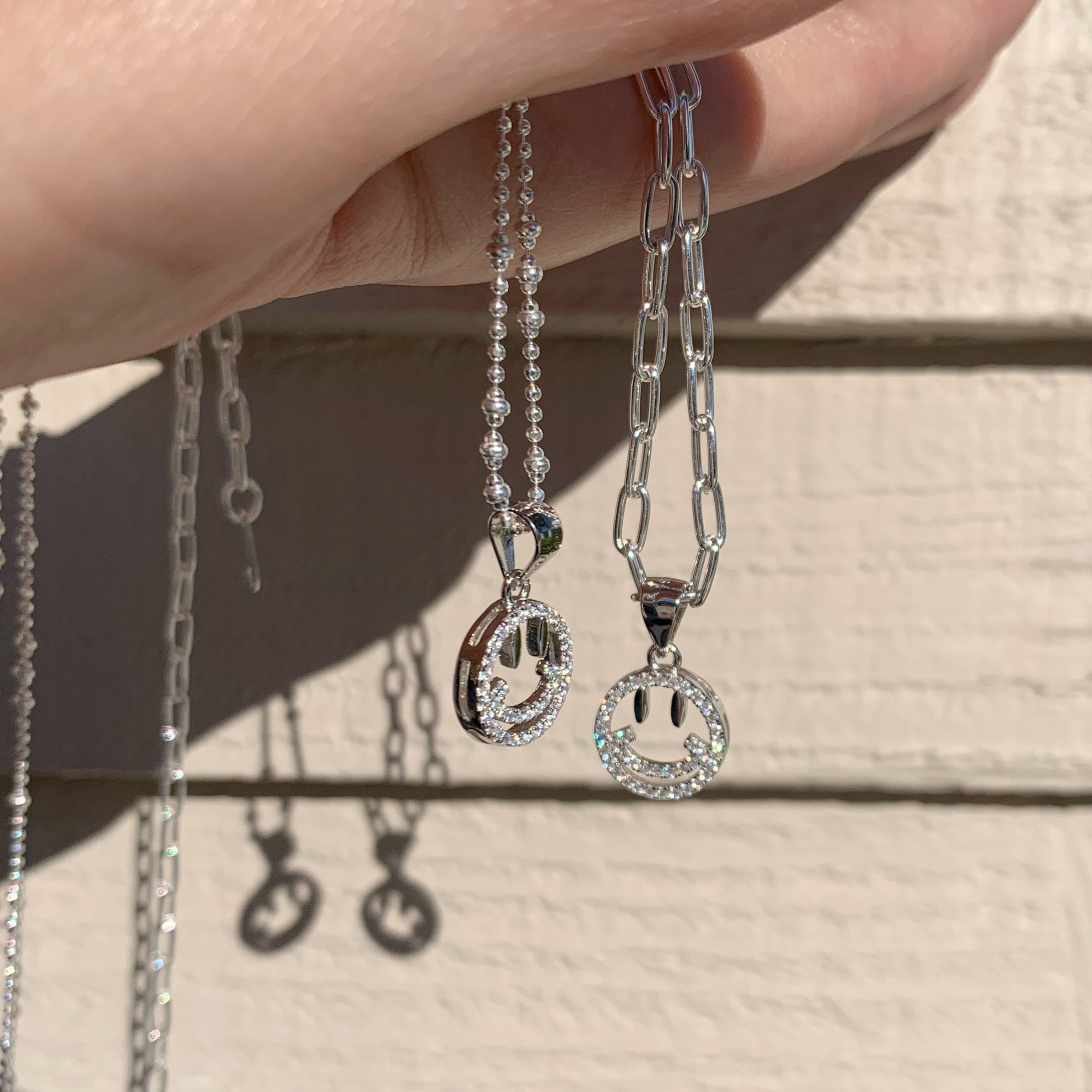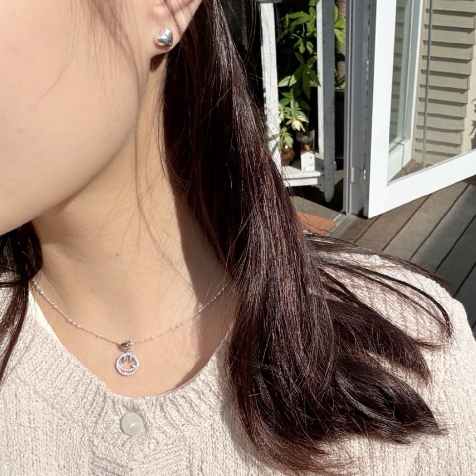 スマイル ジルコニア ペンダント w/ カットビーズチェーン