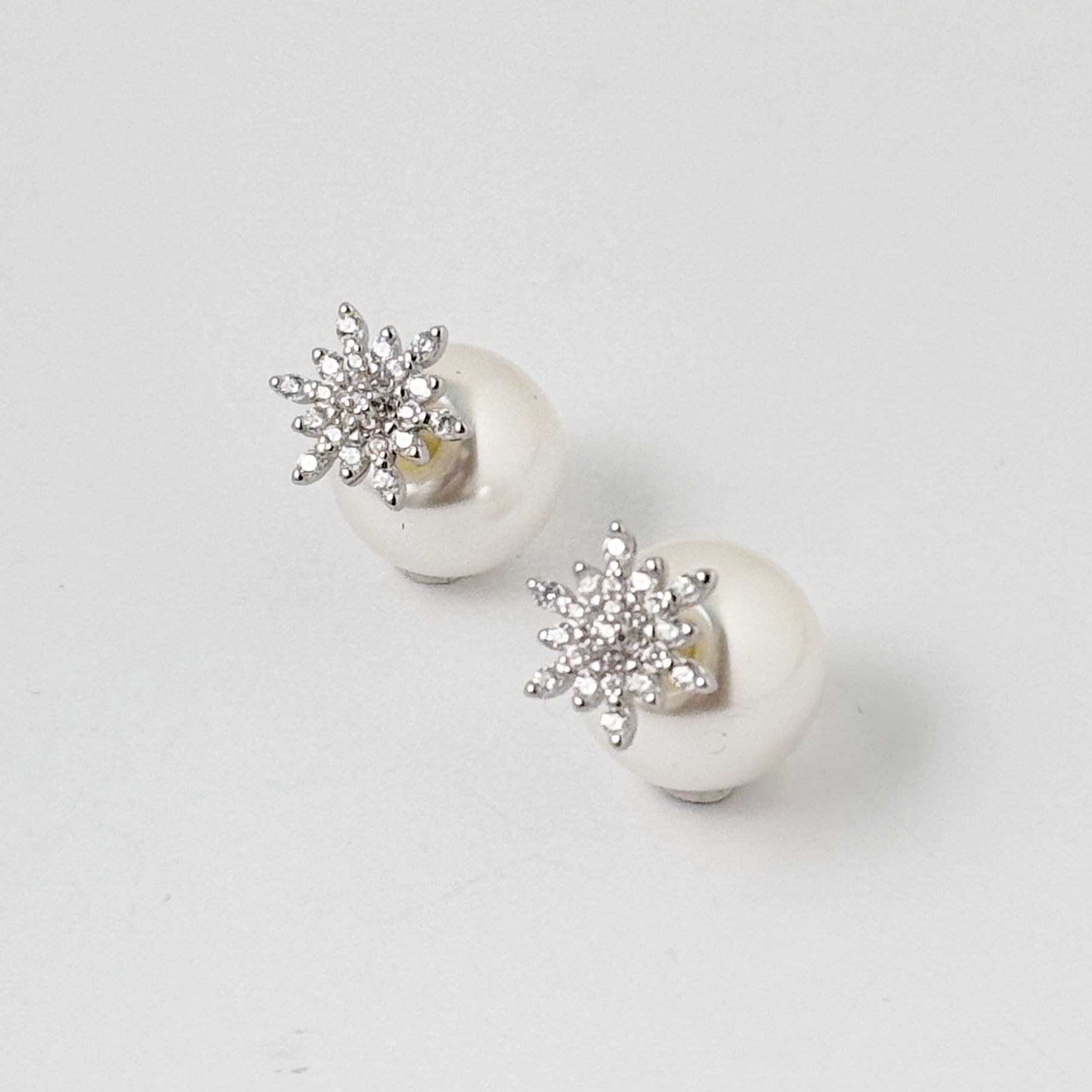 【ラスト1!!】ジルコニア スノー ブリリアント スタッドピアス +樹脂パールキャッチ