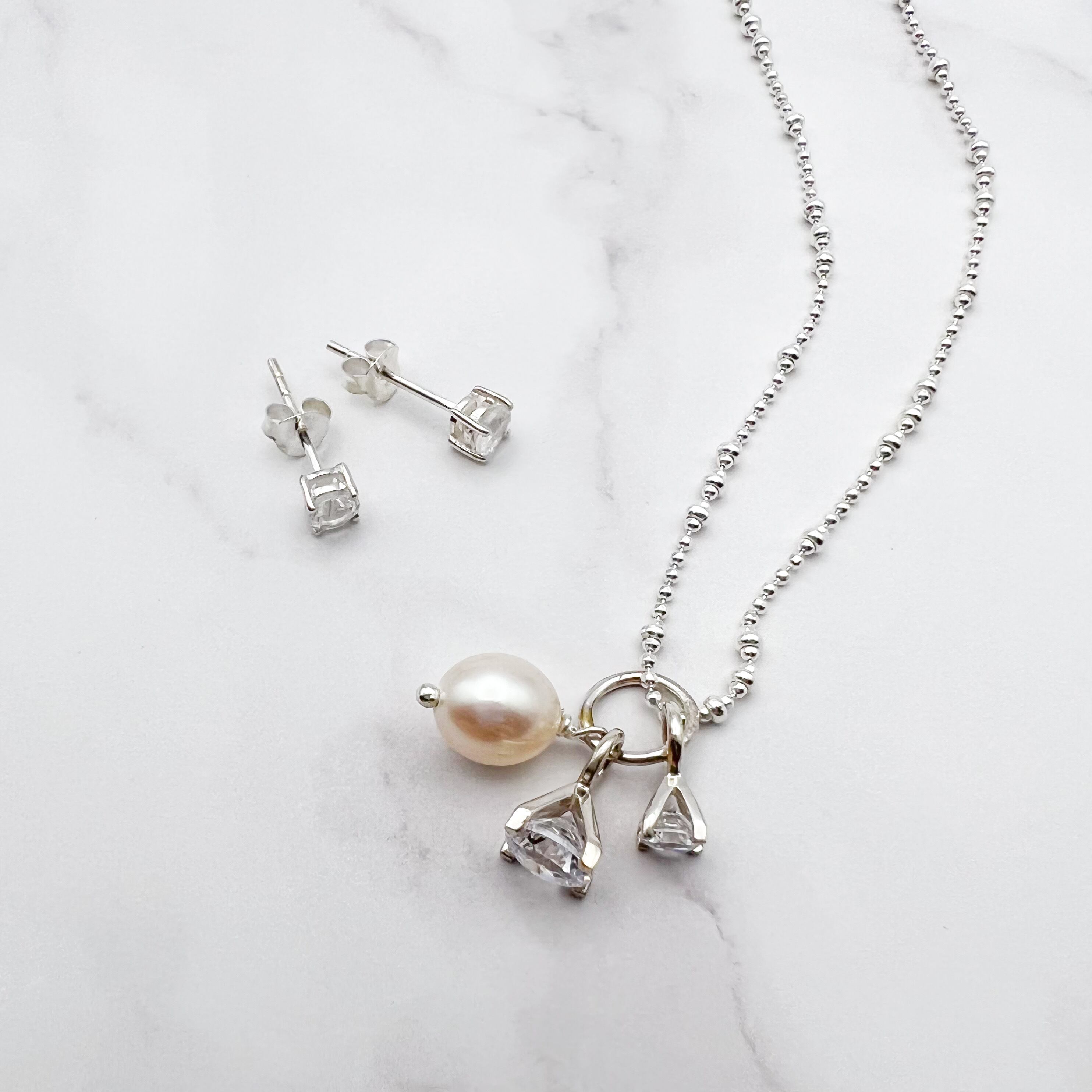 レインボームーンストーンのシンプルなミニスタッドピアス