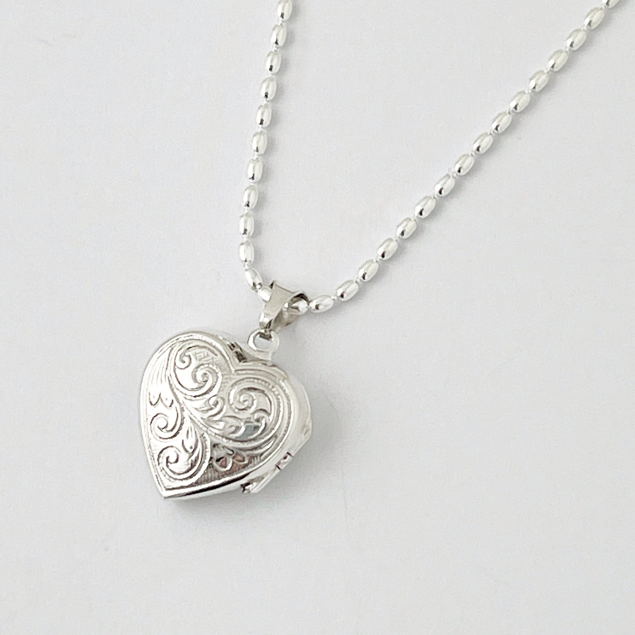 ハート 両面彫り ロケット ペンダント M size (チェーンオプション)