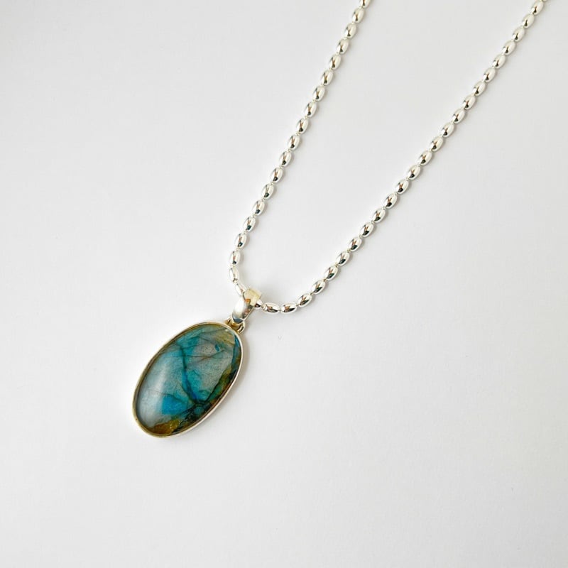 一点物 ラブラドライト オーバル ネックレス α