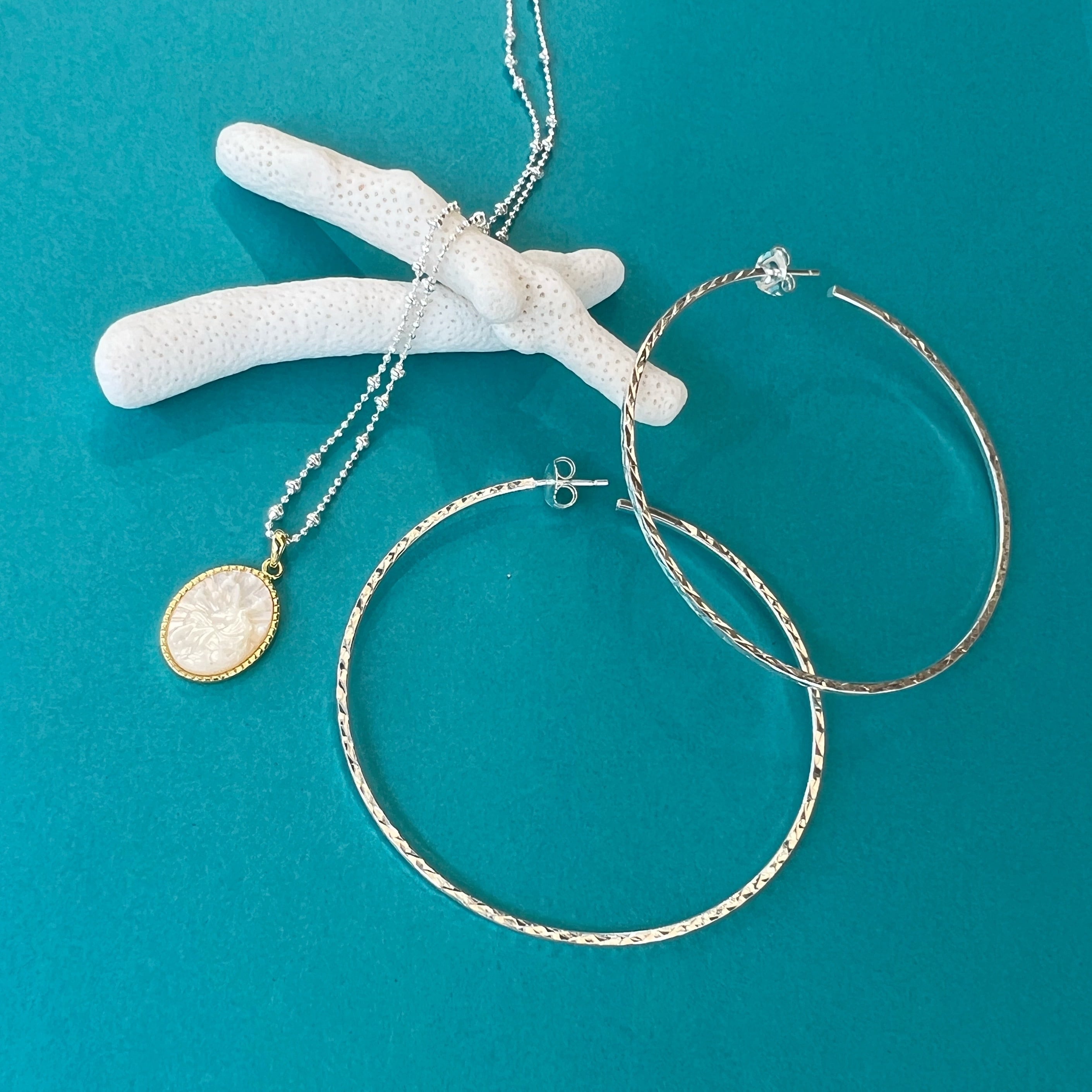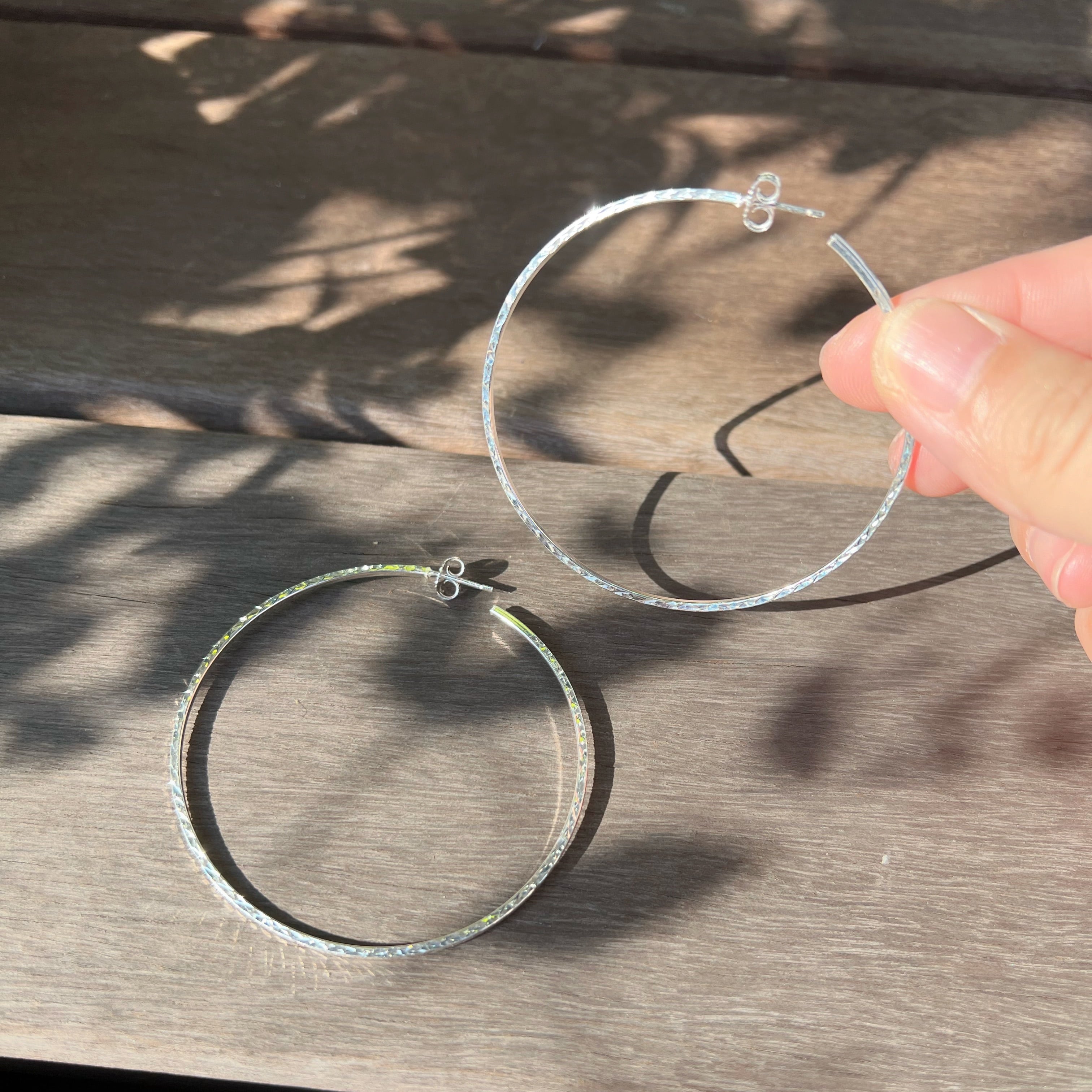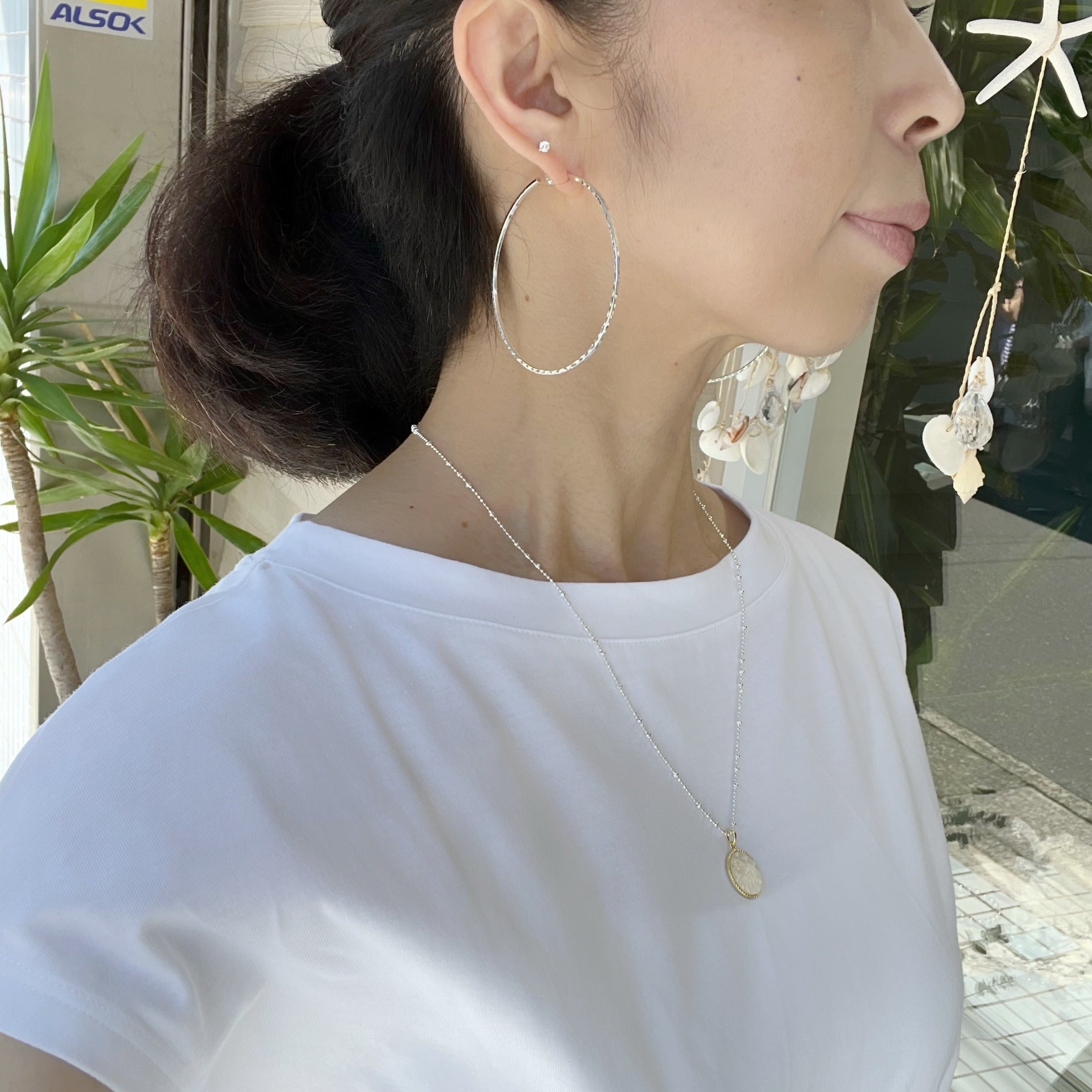 シンプルなフープピアス ですが、ダイヤカット加工してあるので、動かなくてもキラキラです。