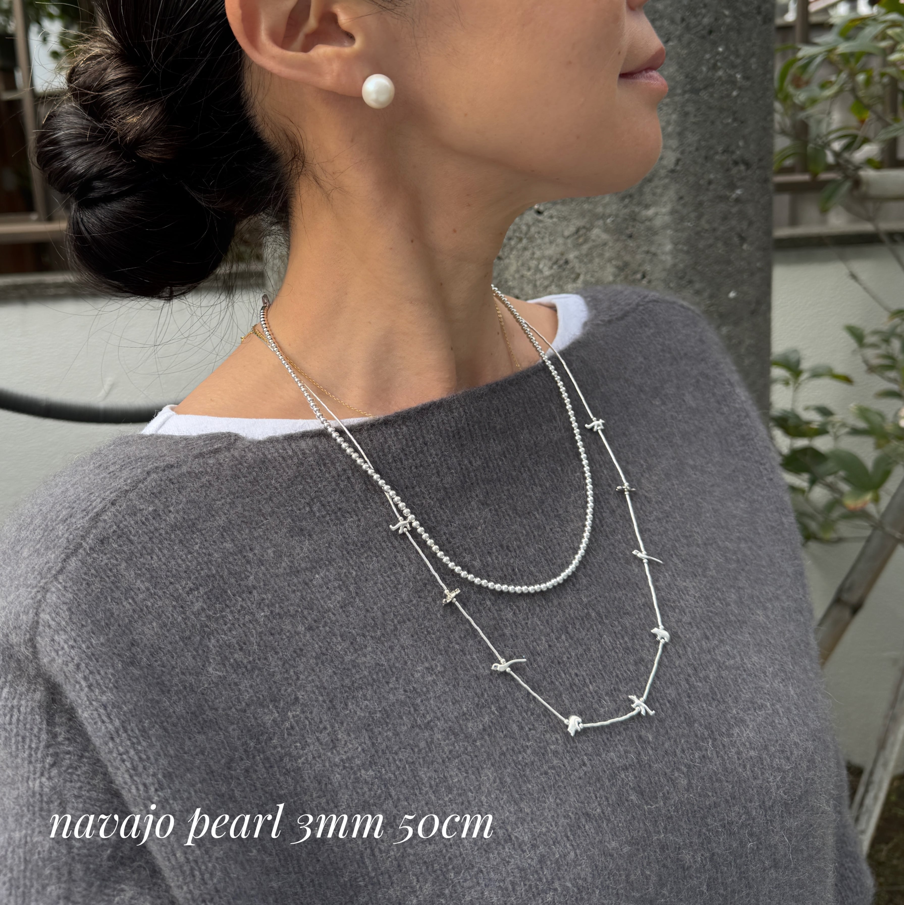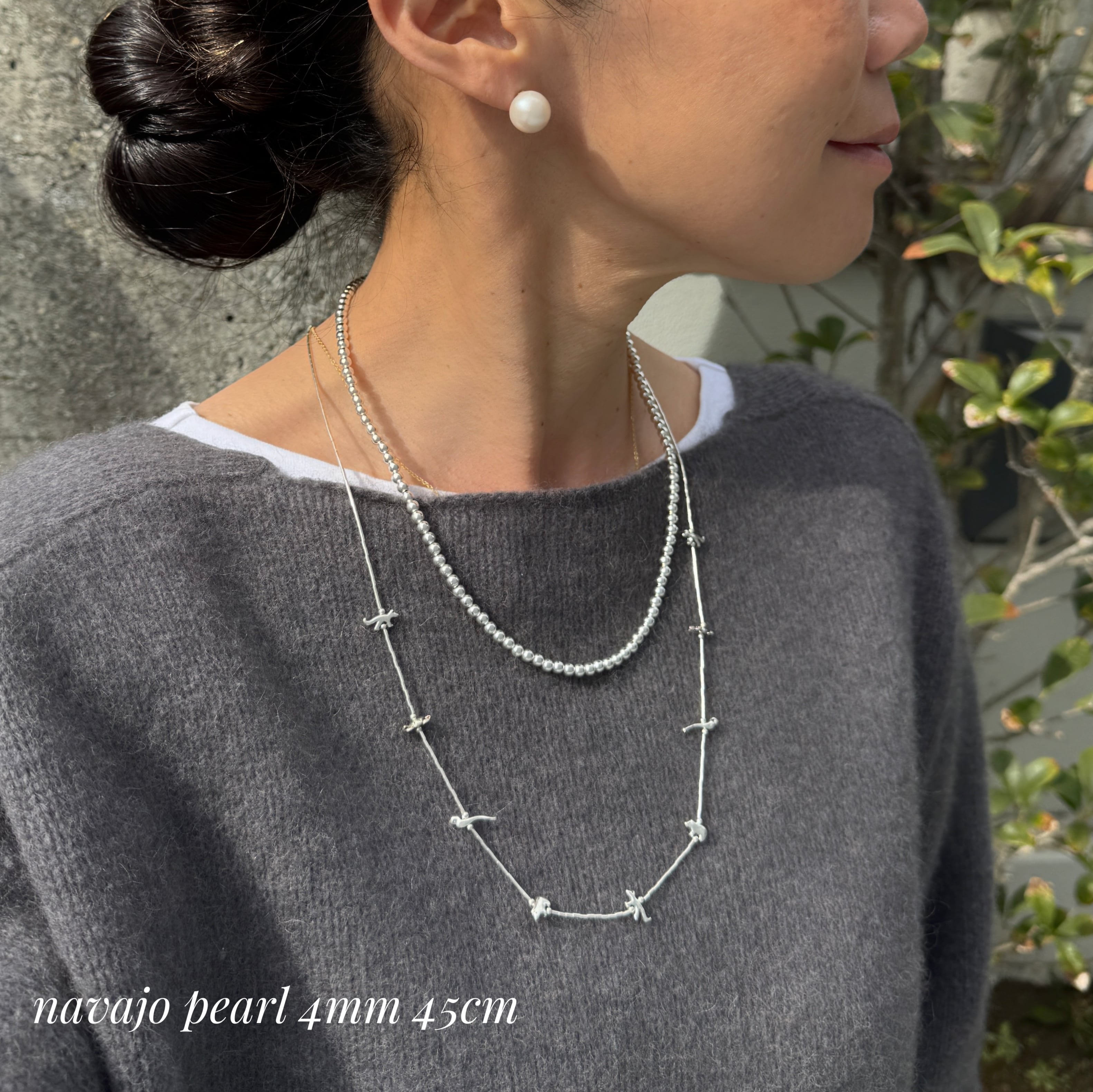 フェティッシュネックレスと ナバホパールネックレスコーデ