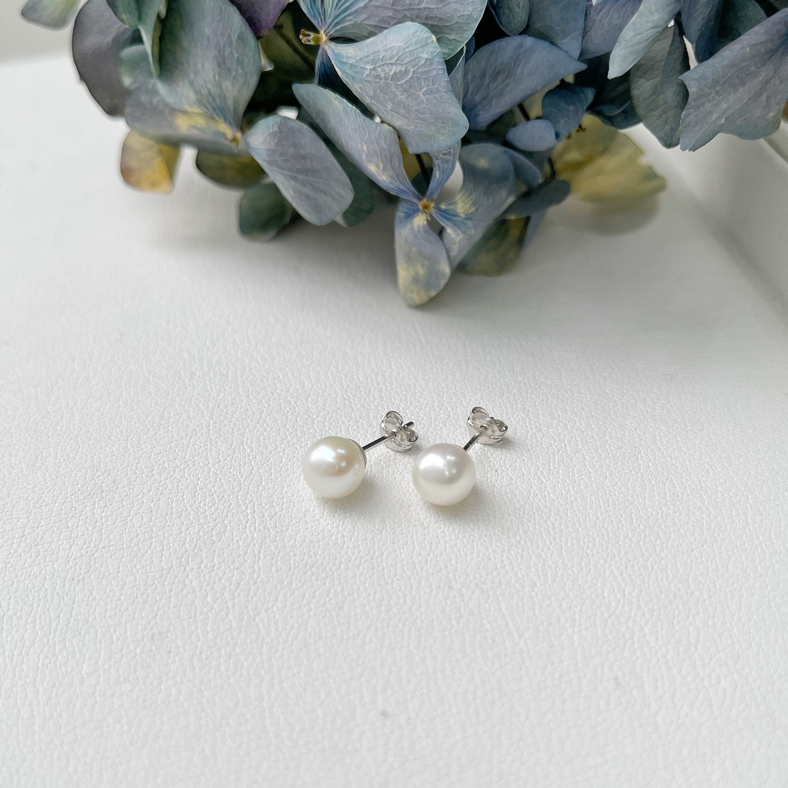 淡水パールの中でも、綺麗に円を巻く、真円に近いパールをスタッドピアスに仕上げました。