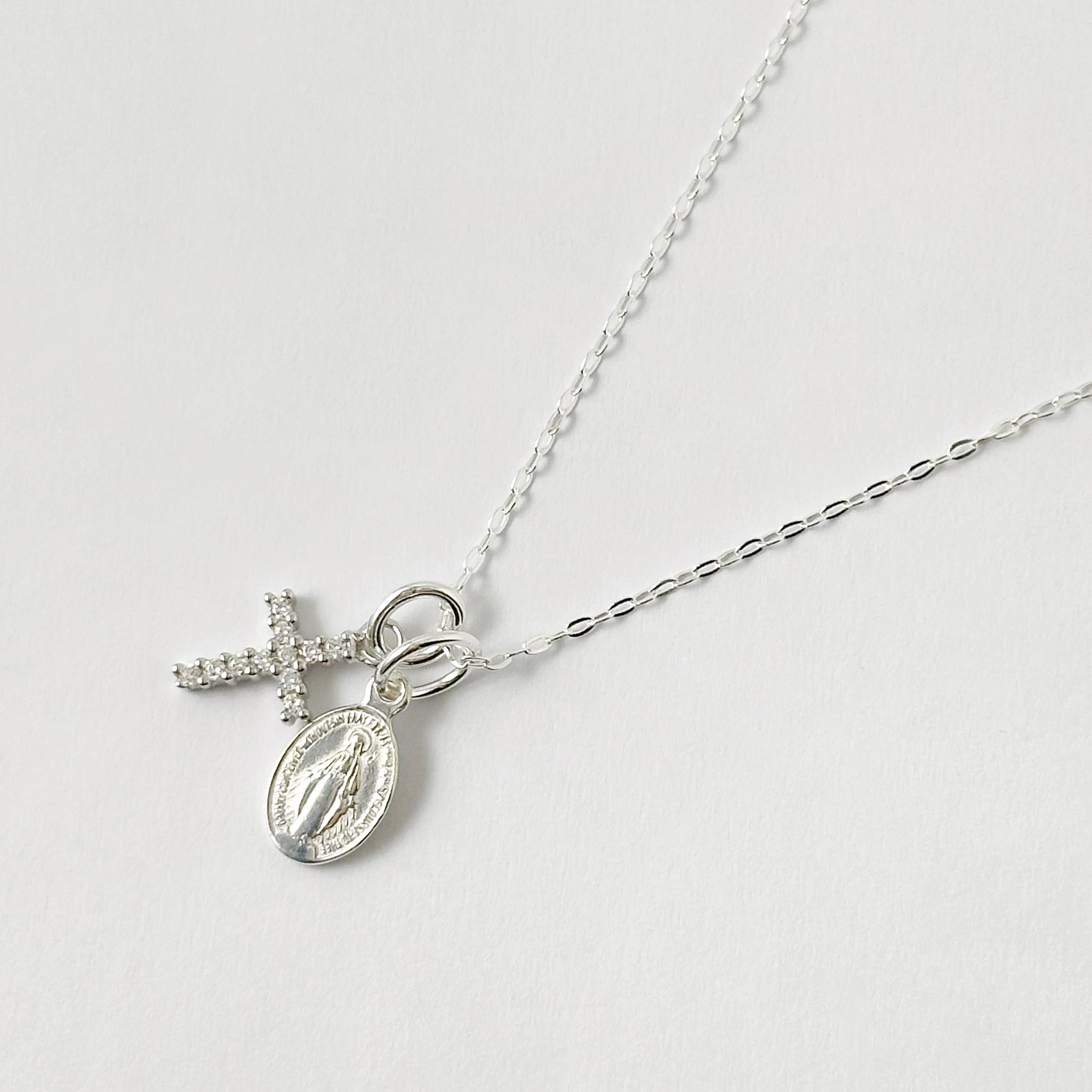 ちいさな ちいさな マリア様のオメダイをあわせて 華奢なネックレスにしました。