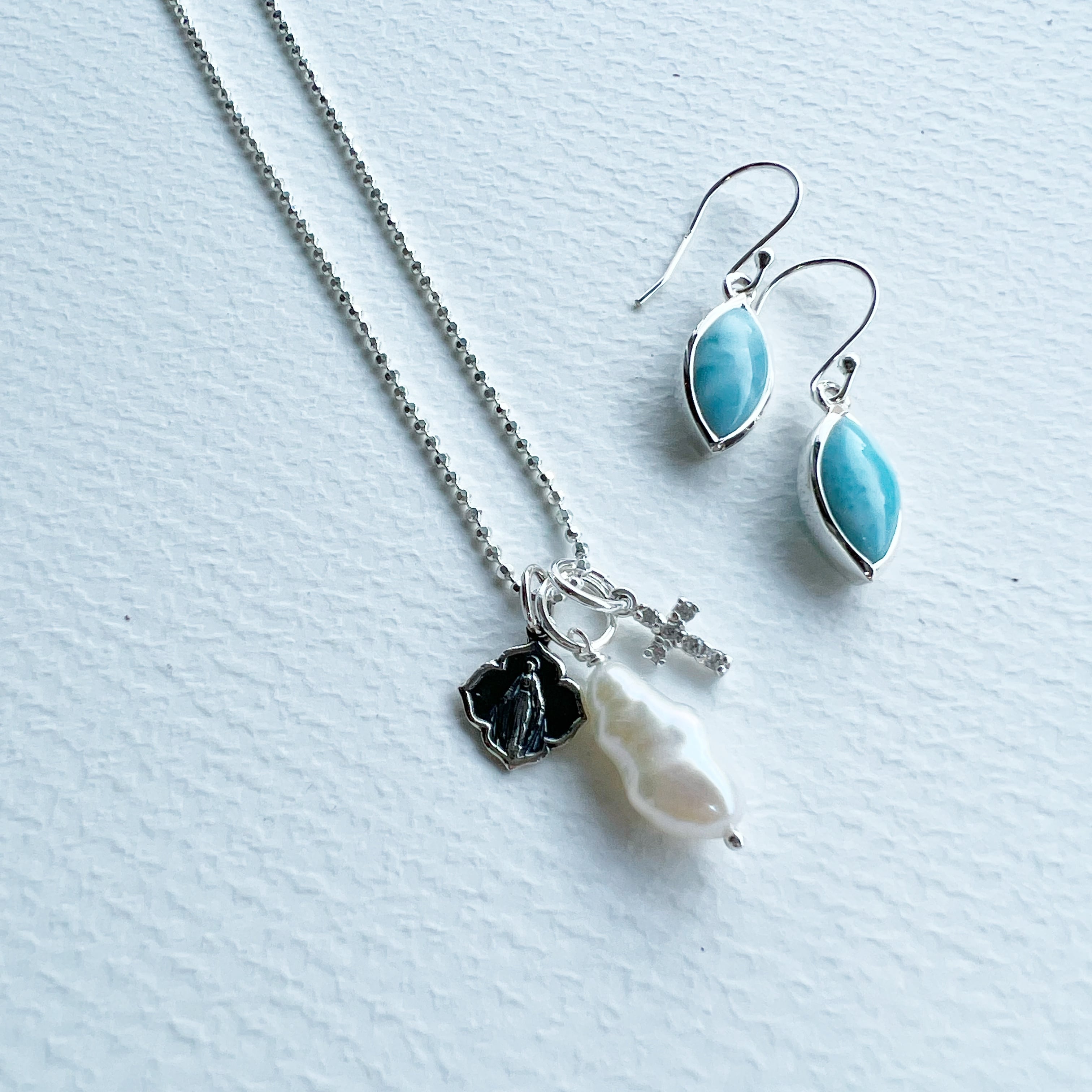 カリブ海に浮かぶドミニカ共和国のみで産出され、海を思わせる石です。正式名称は、『ブルーペクトライト』で、ラリマーは流通名です。