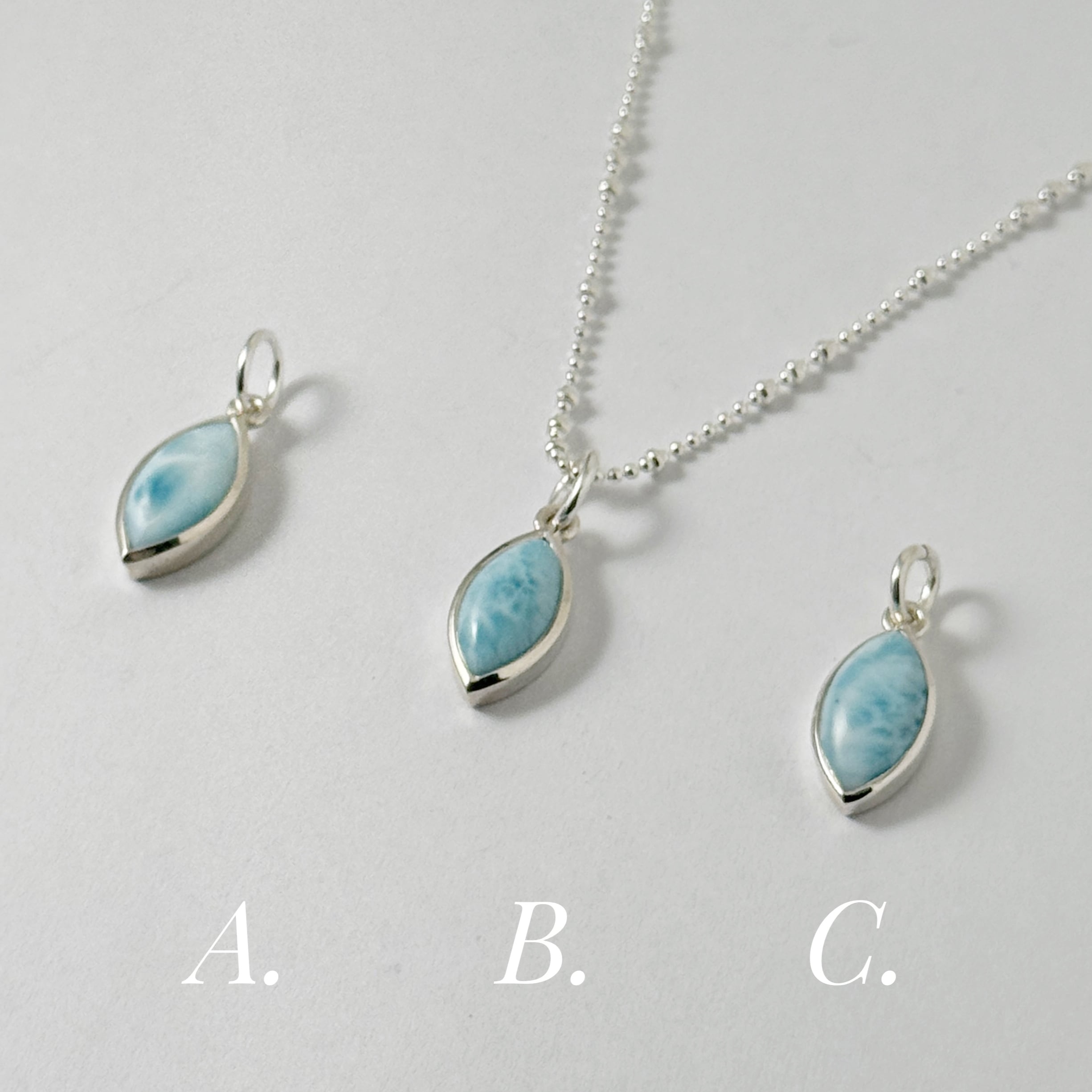 マーキス型のラリマーペンダント、