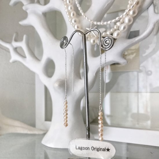ロングピアスでセクシーに…淡水ベビーパールの上品さが合わさって、