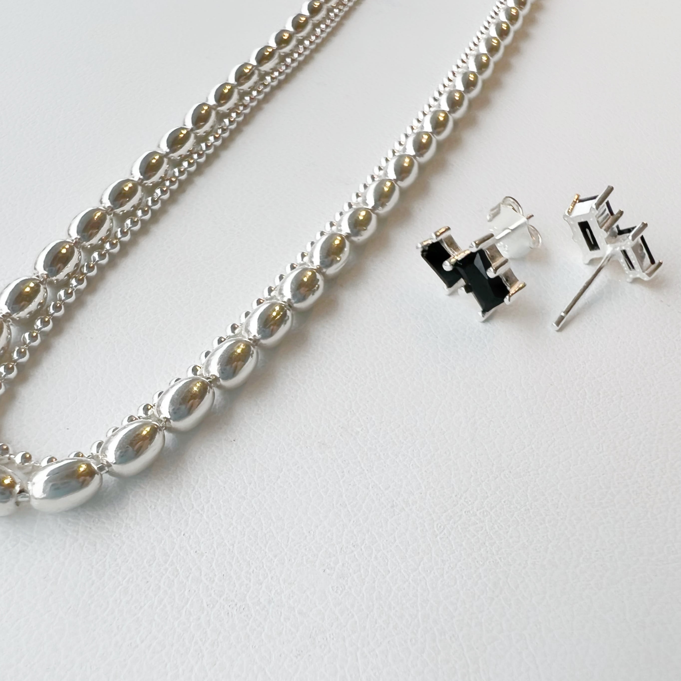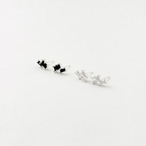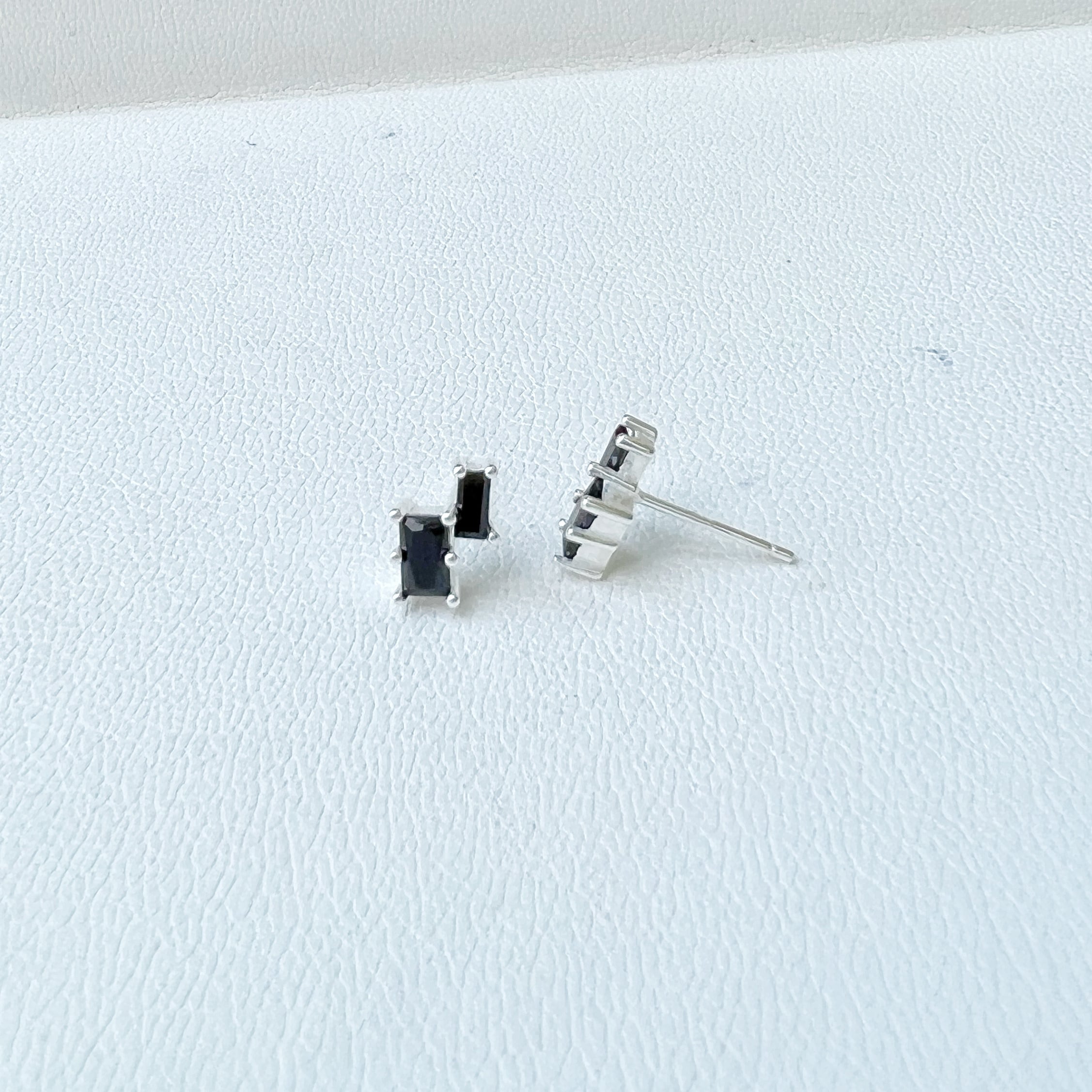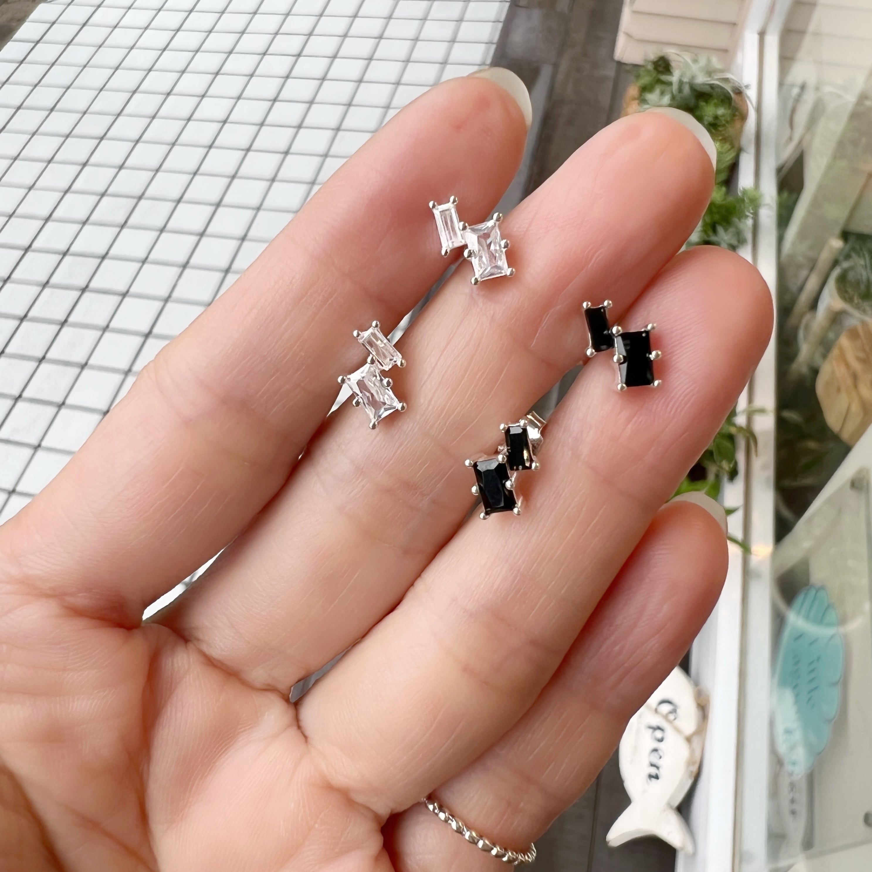 クリア / ブラック ジルコニア ダブル レクタングル スタッド ピアス