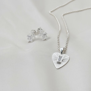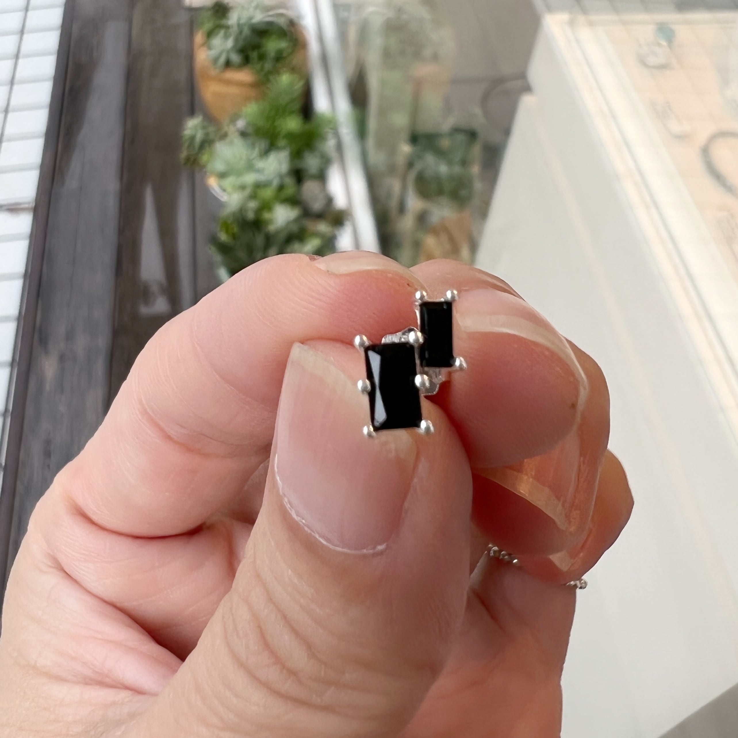 長方形にカットされた大小のジルコニアが2石セットされたピアスです。