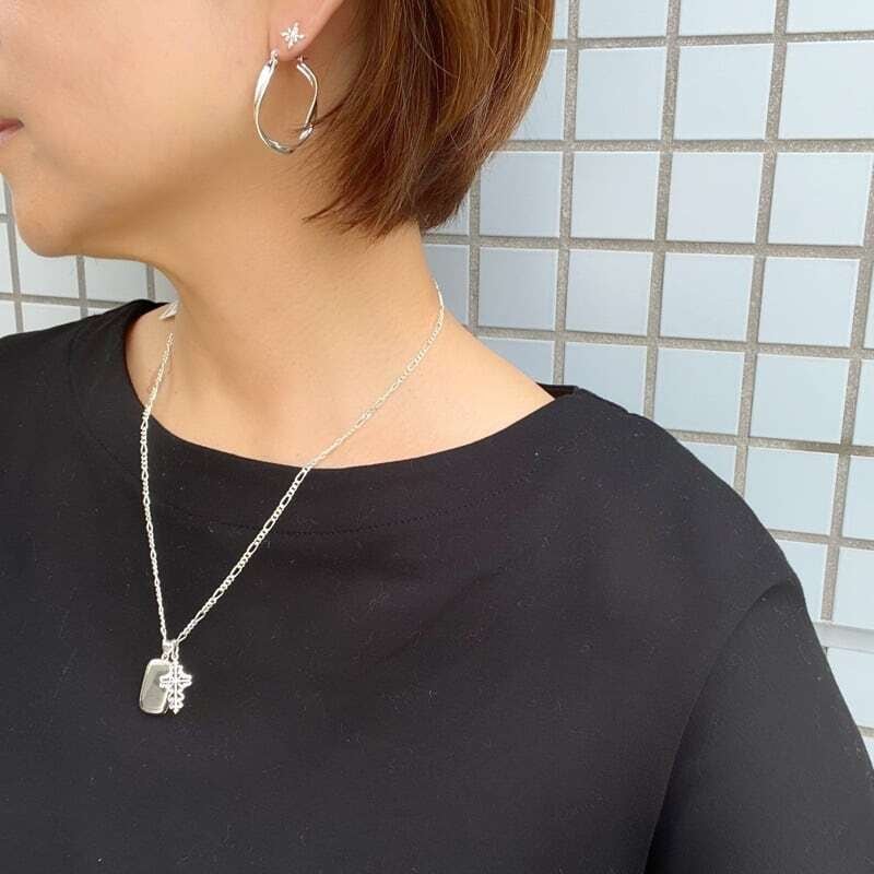 シャープなシルエットながら、繊細な作りなので、多様にお洋服にフィットしてくれるピアスです。