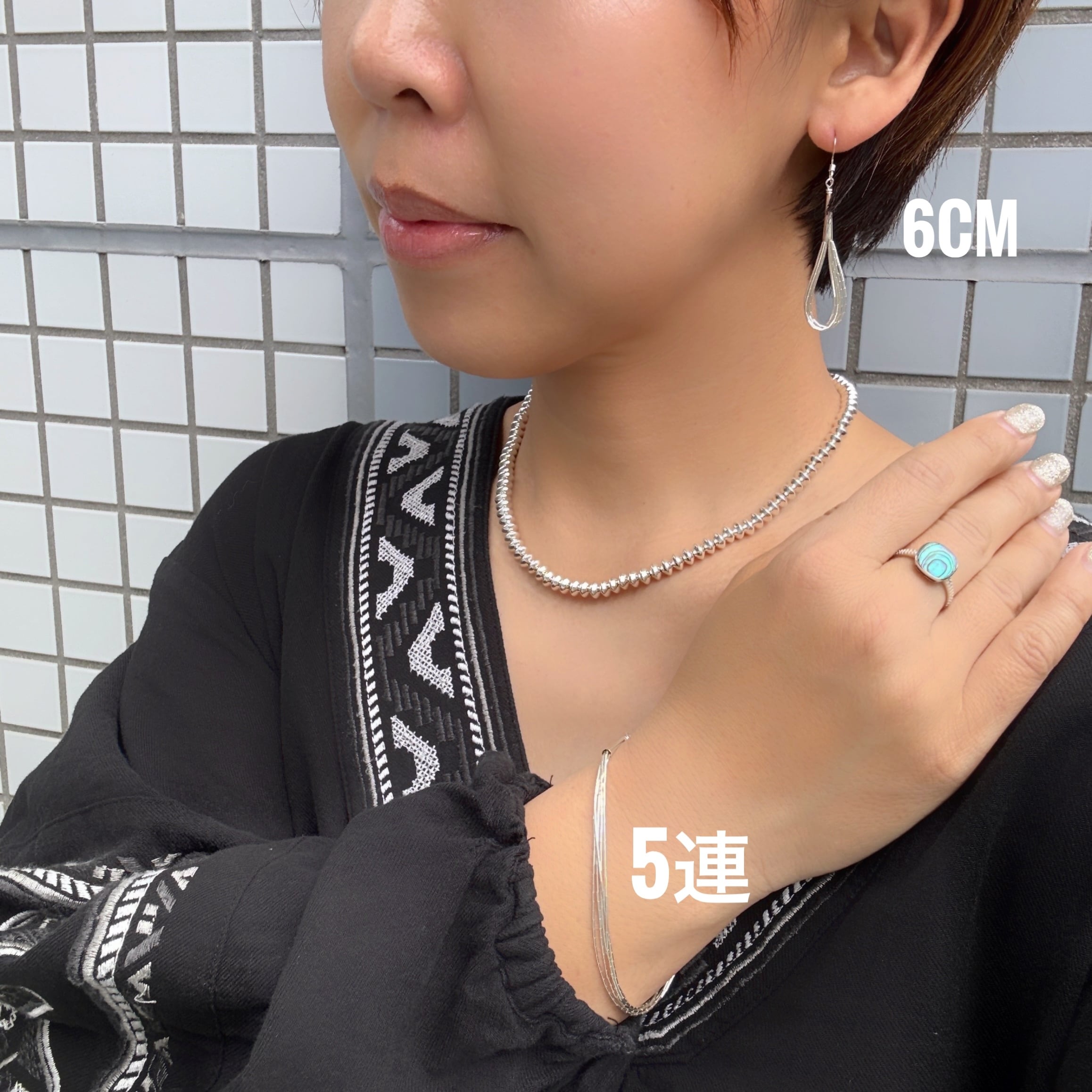 《Indian Jewelry 》リキッドシルバー 5連 HOOK ピアス 6.0cm