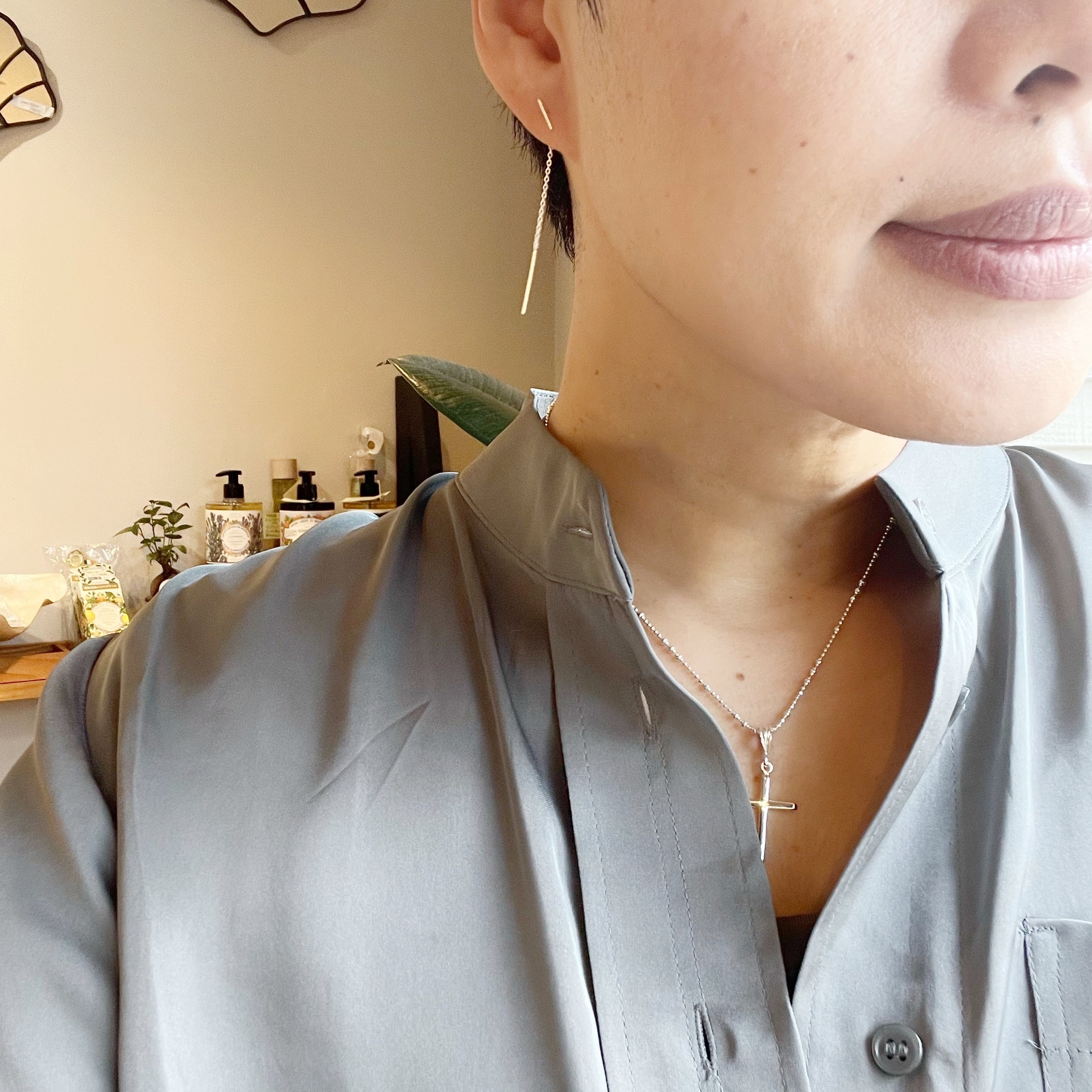 こちらのアメリカンはスリムラインの部分を耳たぶに付けて着用いただくのが綺麗かと思います。