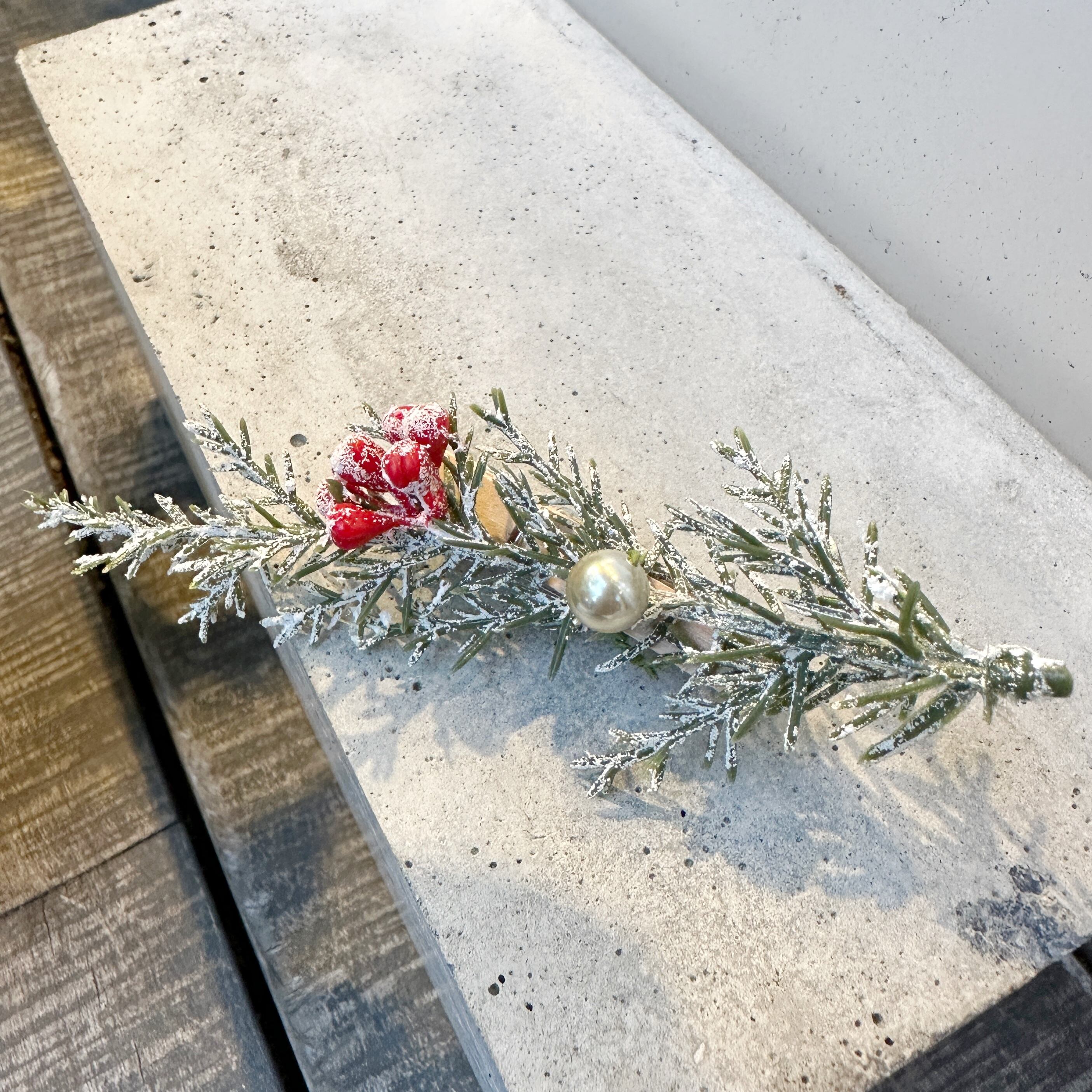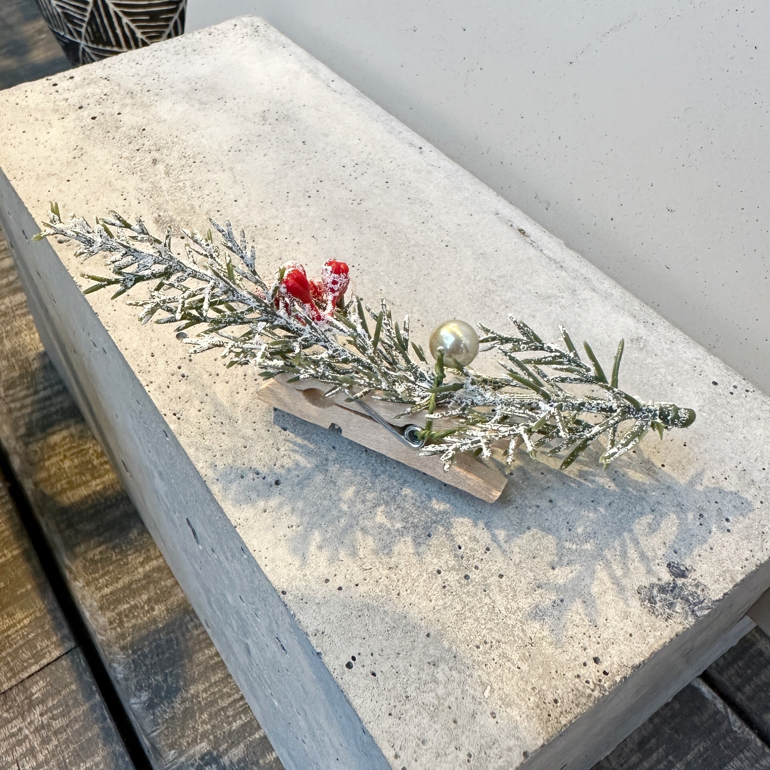 木の実をアクセントにした造花でできたコサージュを木製クリップにセットしました。