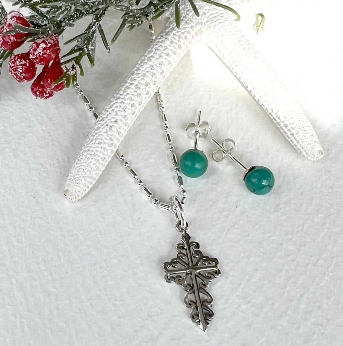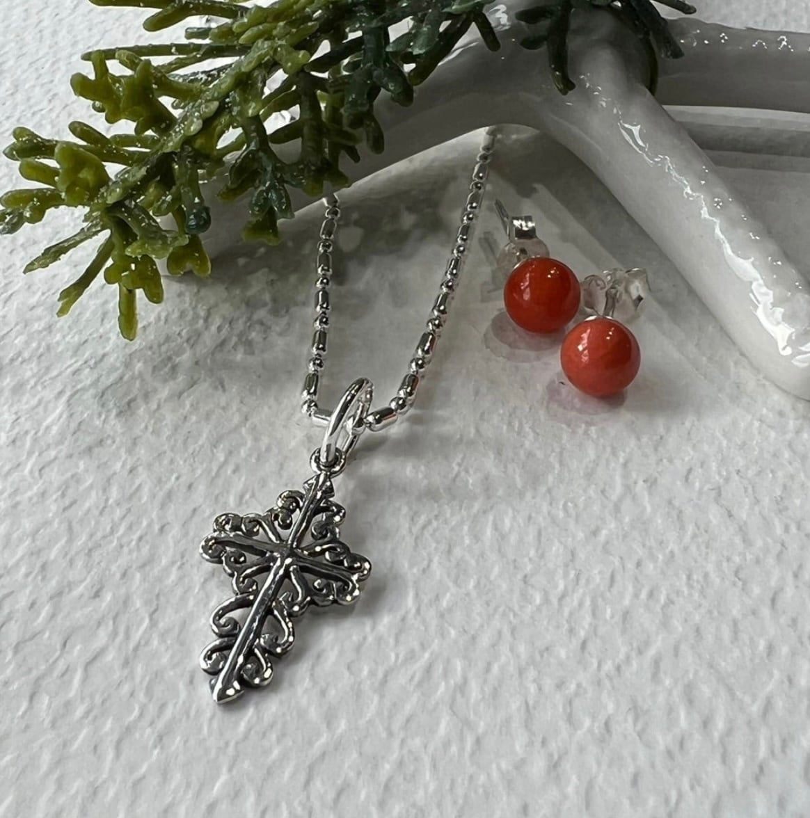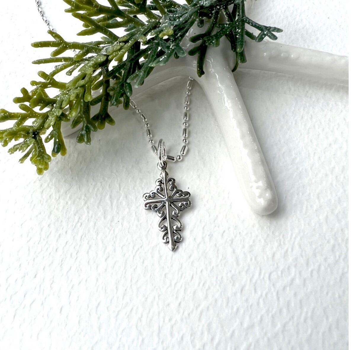シンプルなクロスデザインとは違う、とても繊細な表情をしたジュエリーです。
