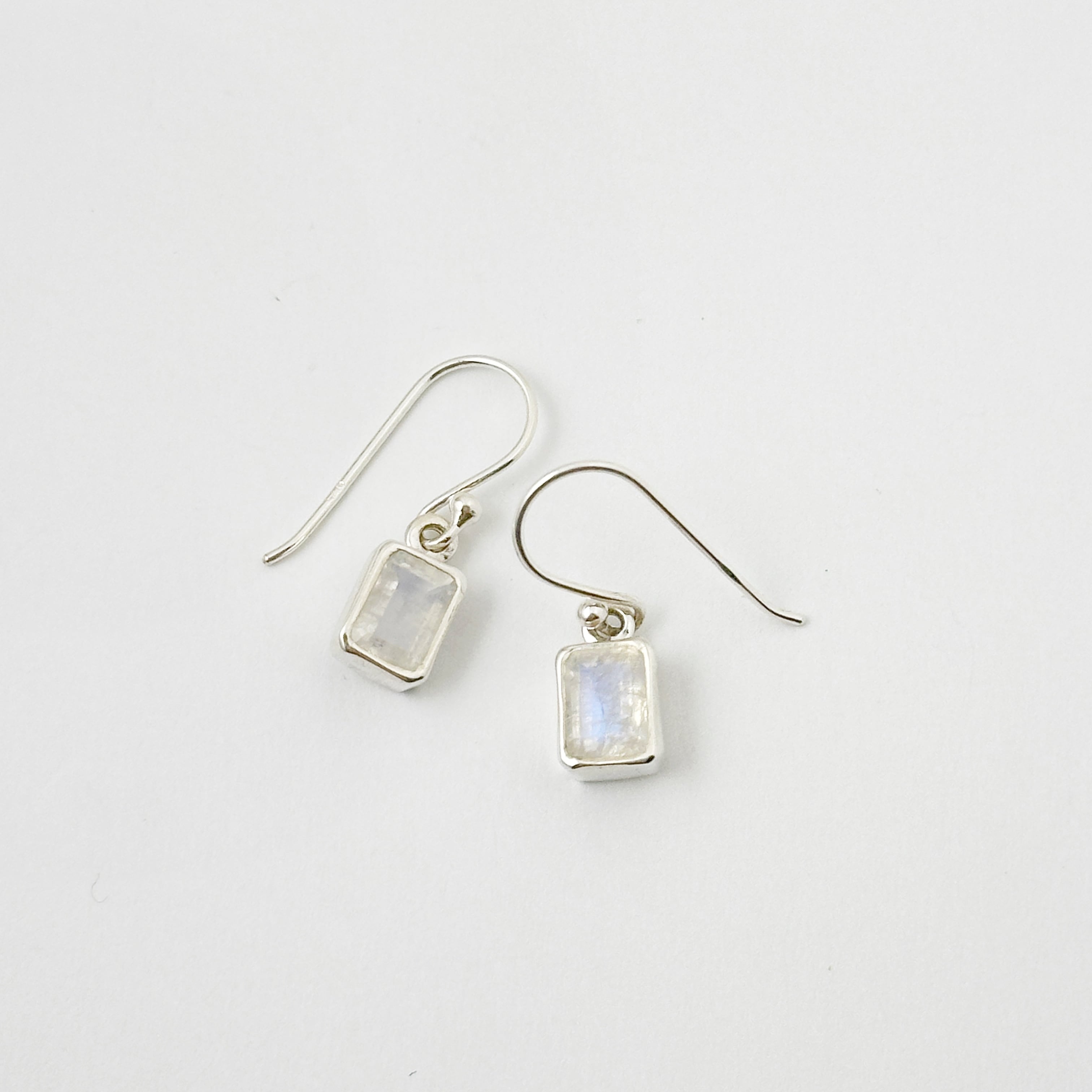 優しい色合いのレインボームーンストーンをスクエアに切り出すことによって、多様な雰囲気を持つピアスになっています。