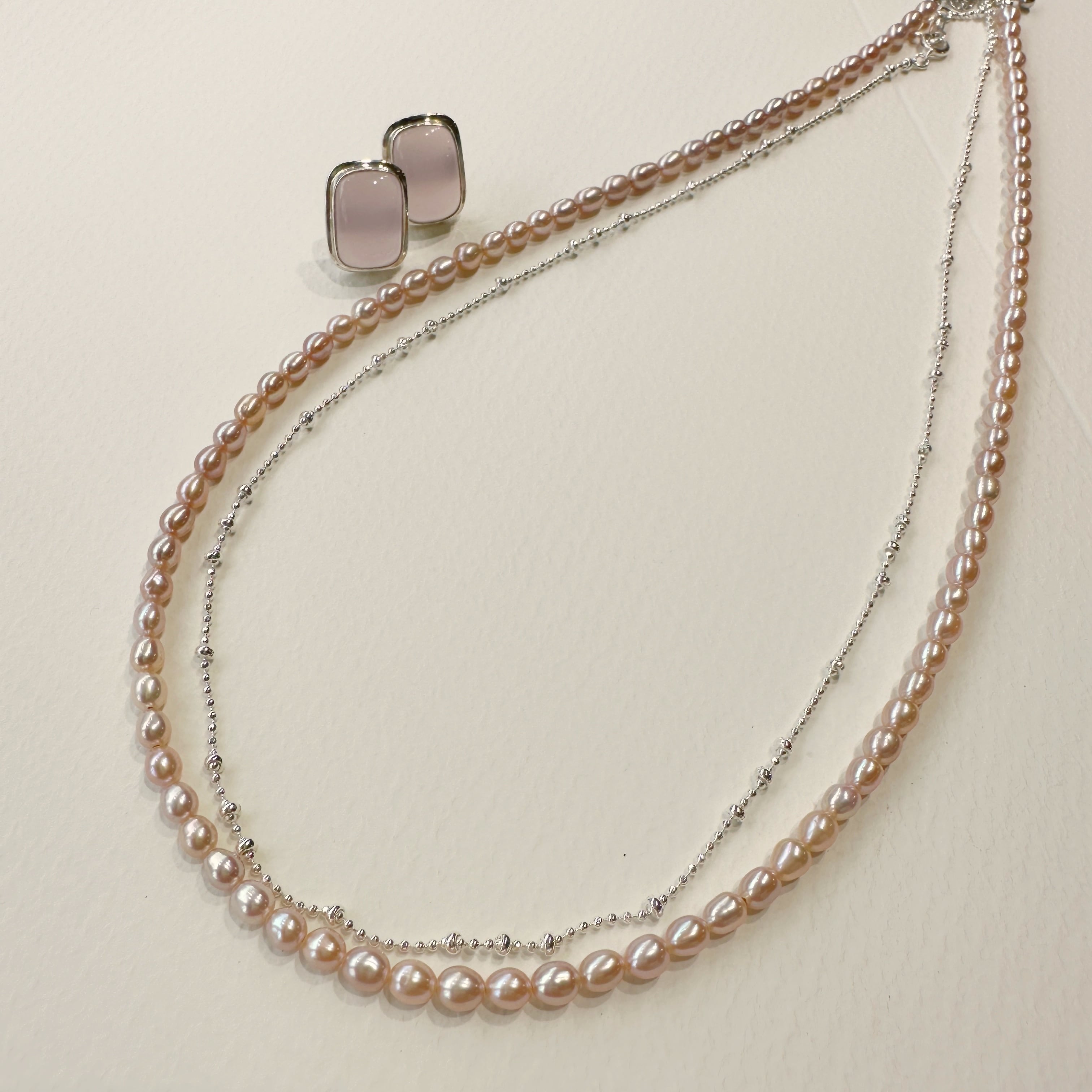 Lagoon Original 38cm-50cm 淡水パール【ピンク】ライス型 ネックレス