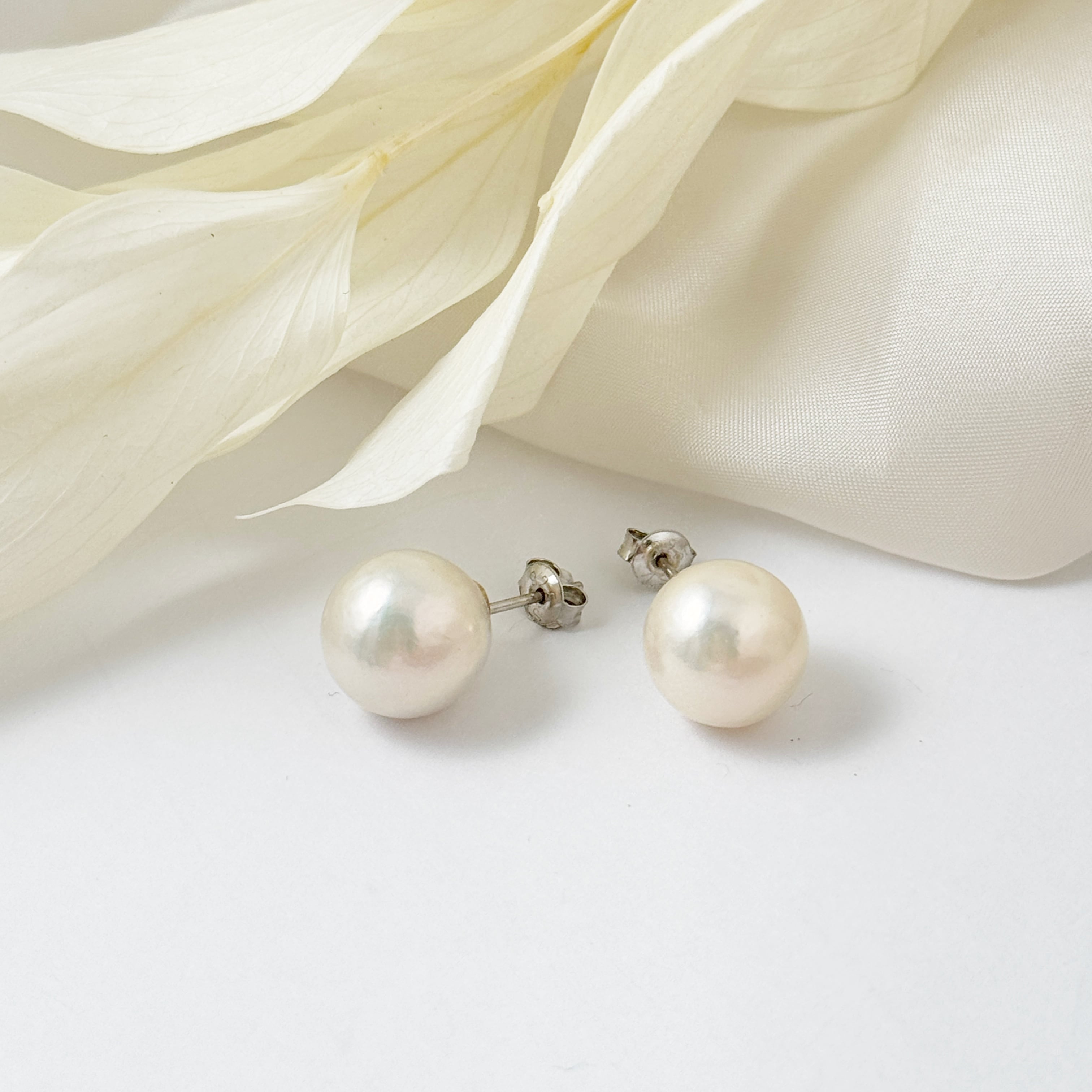 淡水パールの中でも、個性的な雰囲気を放つ少しエクボ感のあるまん丸パールをスタッドピアスに仕上げました。