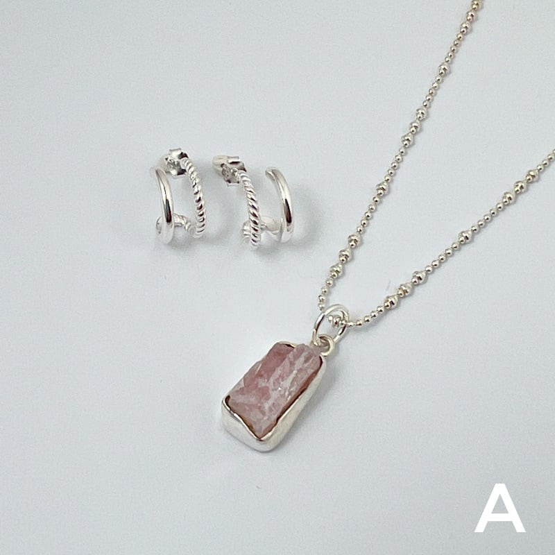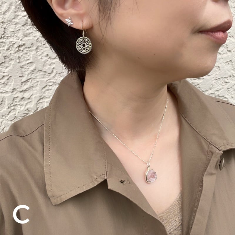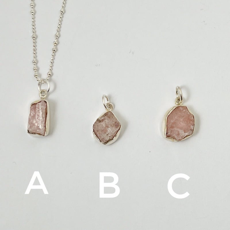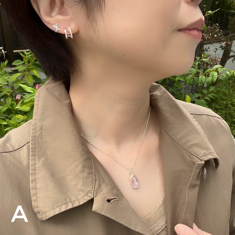 天然の美しさをそのままに、独特の形状が魅力的な一品です。淡いピンク色の石は、女性らしい柔らかい雰囲気を演出してくれます。