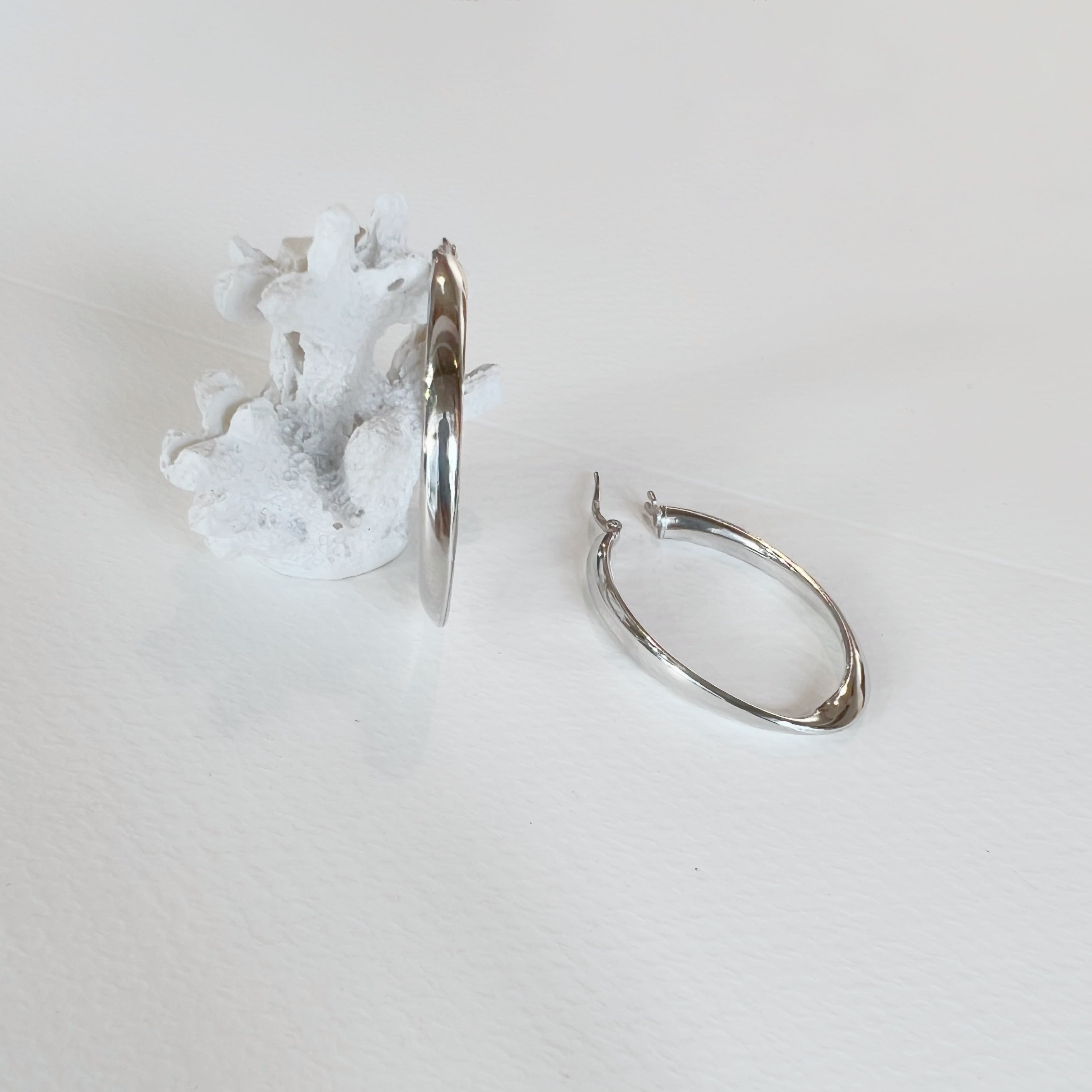 シンプルで大人らしいフォルムが素敵なフープピアス。