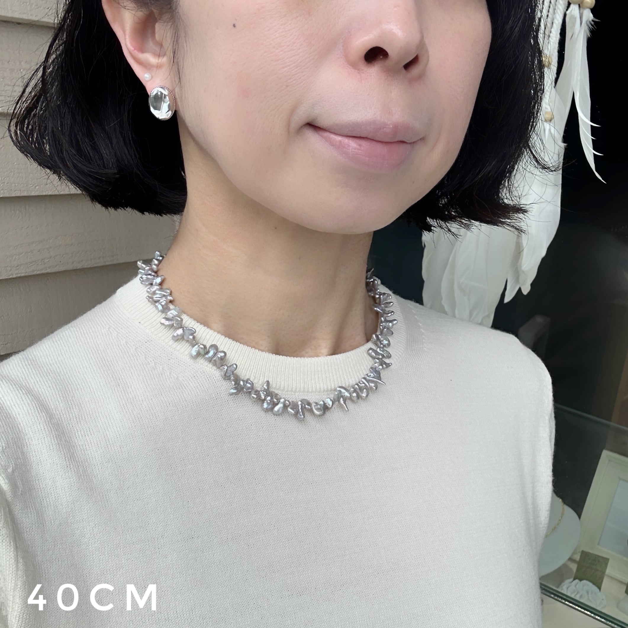 グレーカラー バロックパール ネックレス。40ー50cmの長さからお選び頂いてお買い物ください。