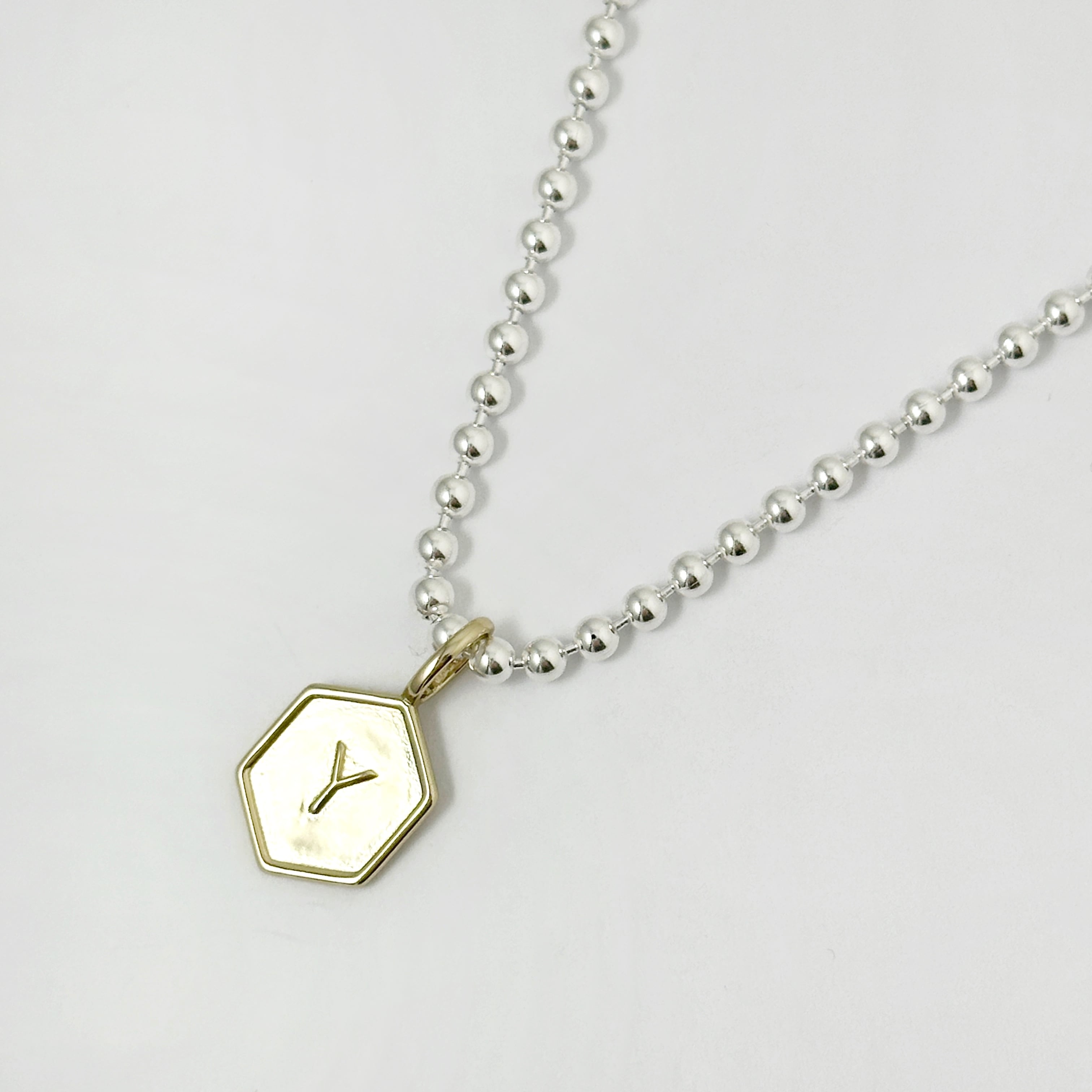 Lagoon Original ハニコム ヘキサゴン イニシャル ネックレス with 極太 ボール チェーン / ボリューム ロング アズキ チェーン