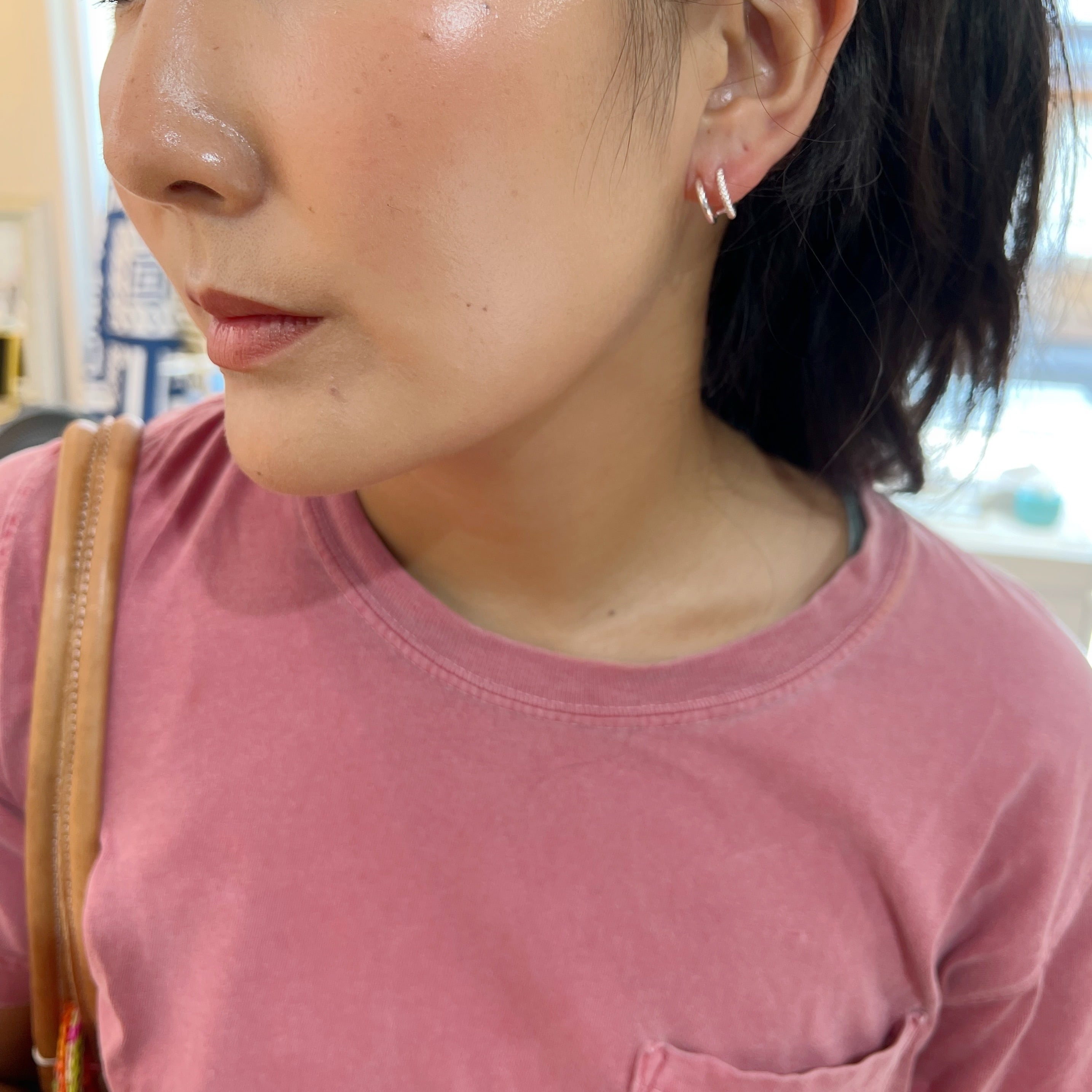 着用すると、耳たぶに2本のラインが2本のフープのように見えるデザインです。