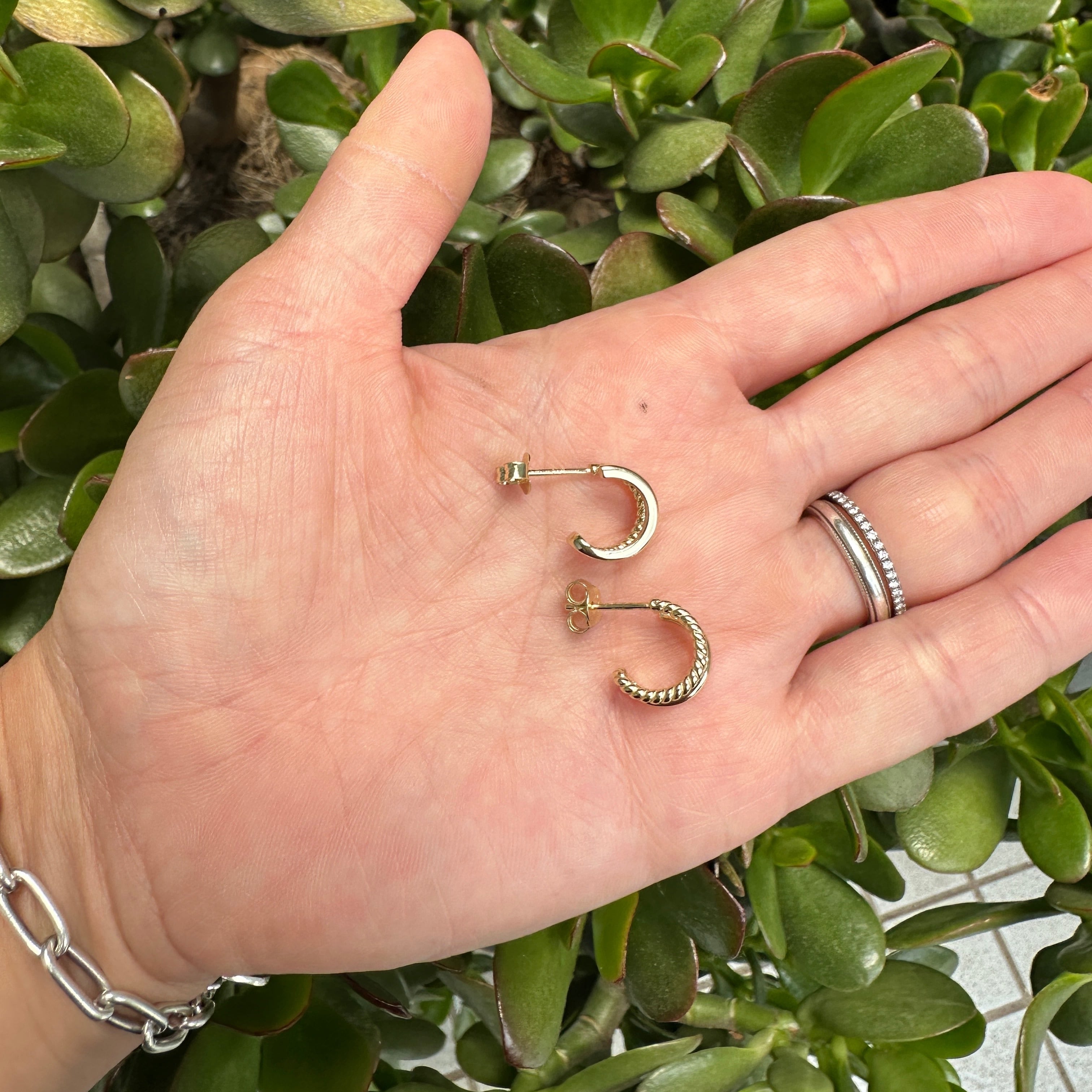 一本は艶やかなシンプルなライン。もう一本が、ポスト部分と結合していて、ロープ状になっているのでその名もハーフロープ スタッドピアス です。