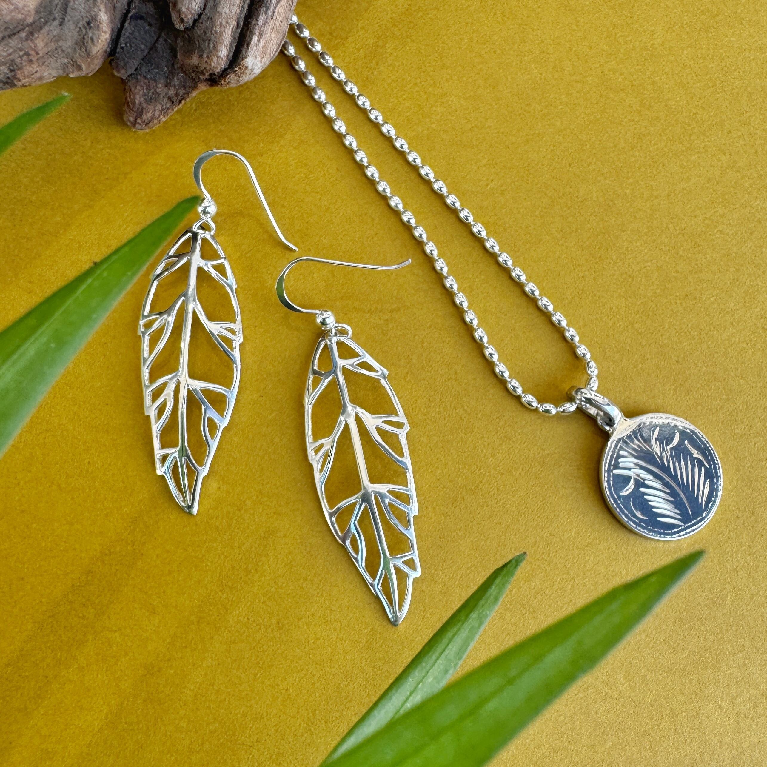 リーフをモチーフにしたカービングデザインが魅力的なネックレスです。