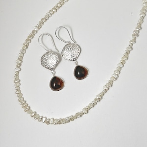 逆にブラックのお洋服と合わせても、とても女性らしいスタイリングに仕上がります。スモーキークオーツには、周りにぐるっとシルバーの枠がありますので、ヘアカラーが暗めの方にも、ボヤけずにしっかりと存在感を持って、お使いいただけます。