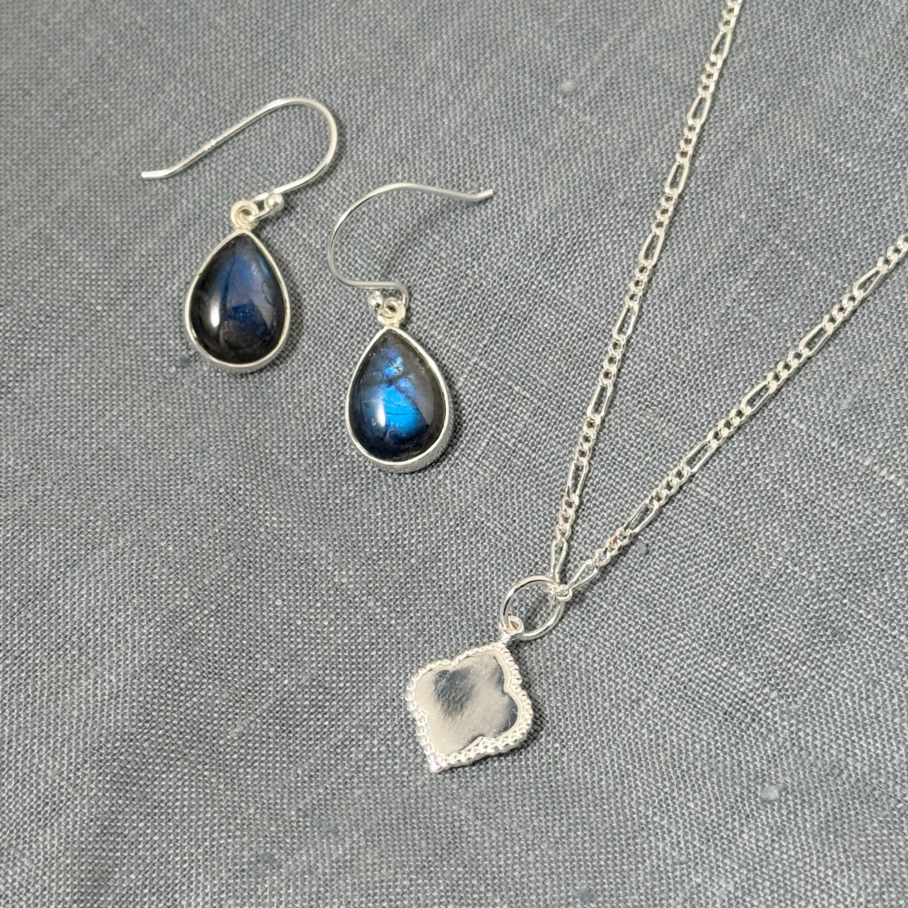 ぷっくりとした厚さがあり、ラブラドライトも存在感のある発色となっています。ハイグレードのラブラドライトのみ使用して作成しているので、そのシラーは格別です。