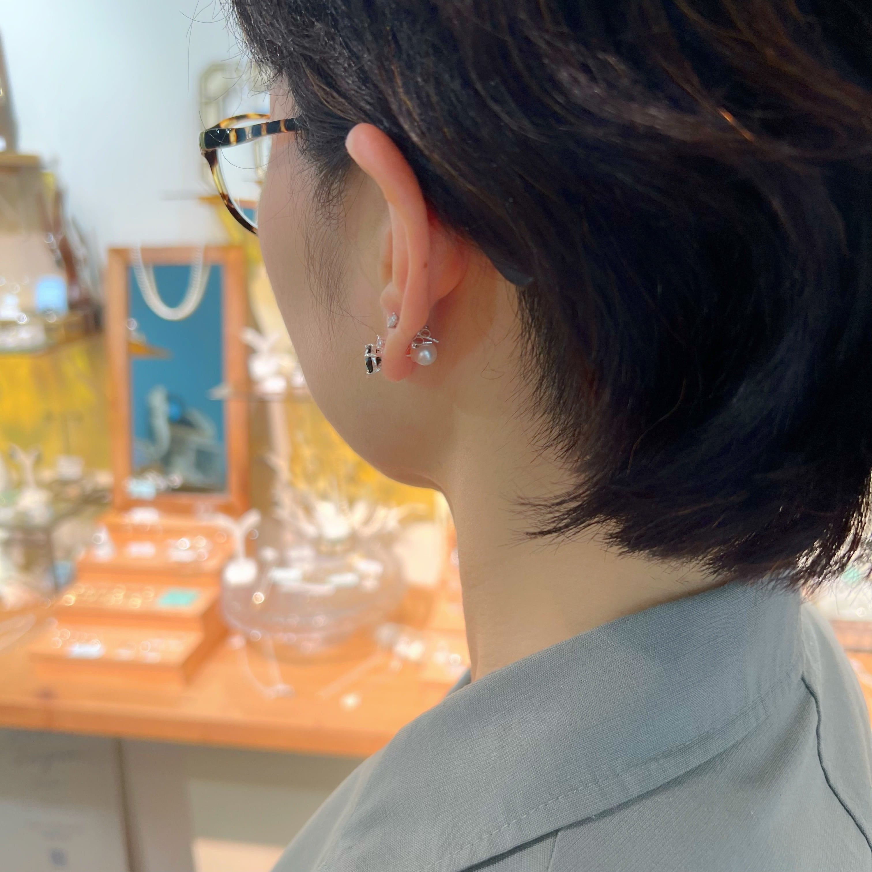 淡水パールでできたパールキャッチはリバーシブルで使えて便利です。