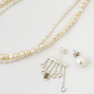 ※ B 正面から見て左側が長い方の五月雨ピアス + パールセット