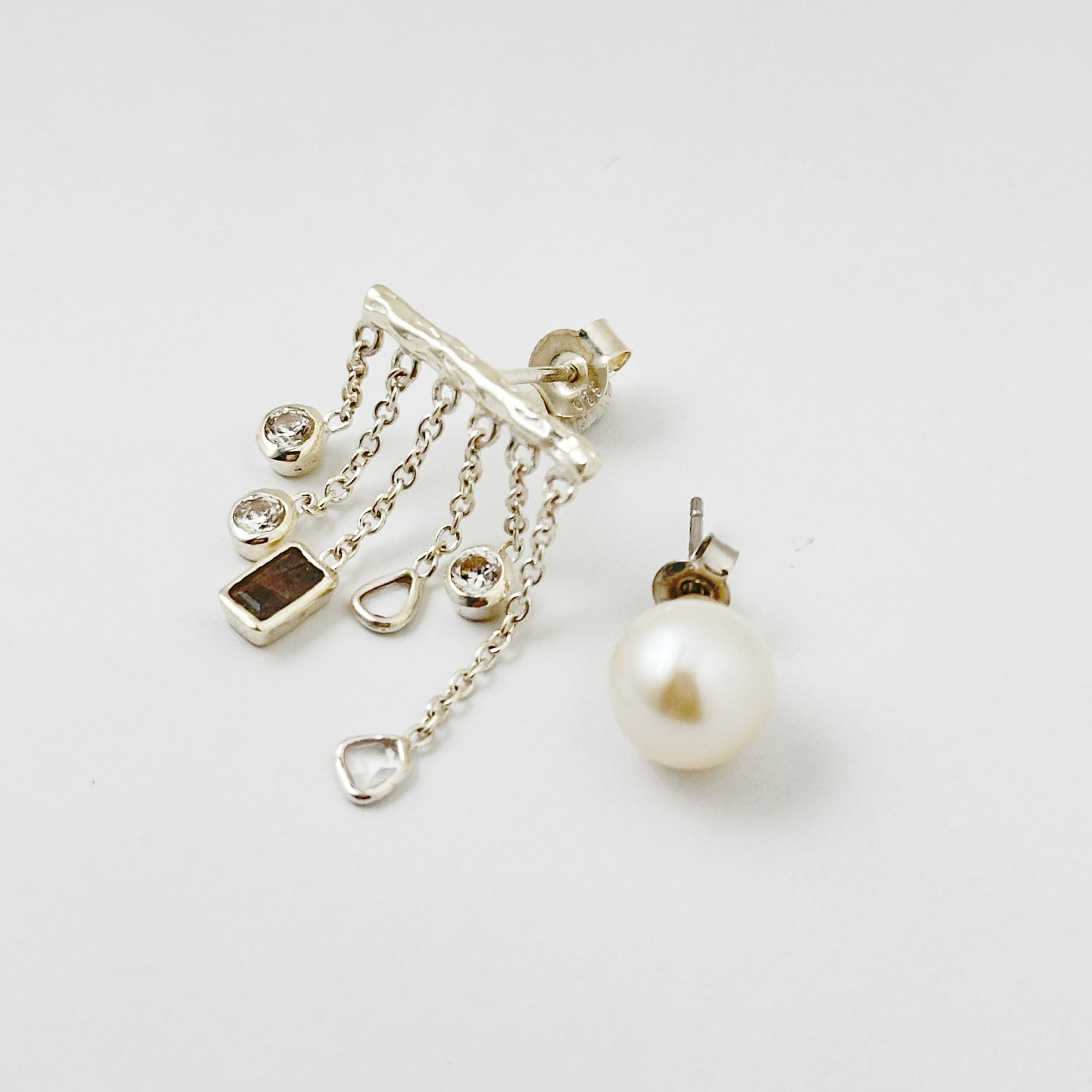 もう片方の耳には直径0.9cmのパールを合わせたセットとなります。