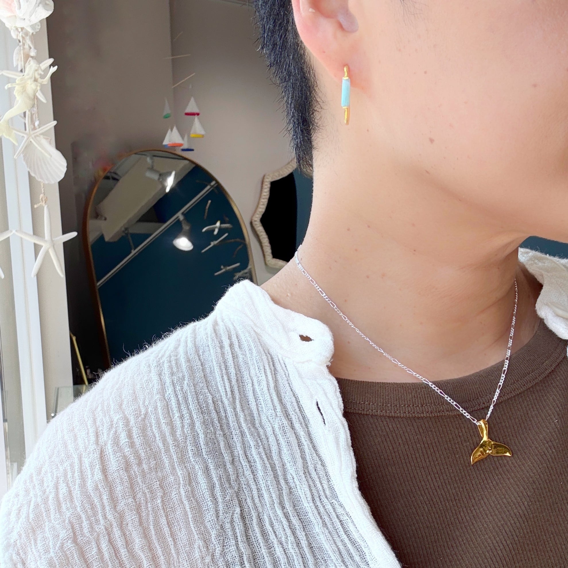 Gold Coating ラリマー ロングフープ スタッド ピアス