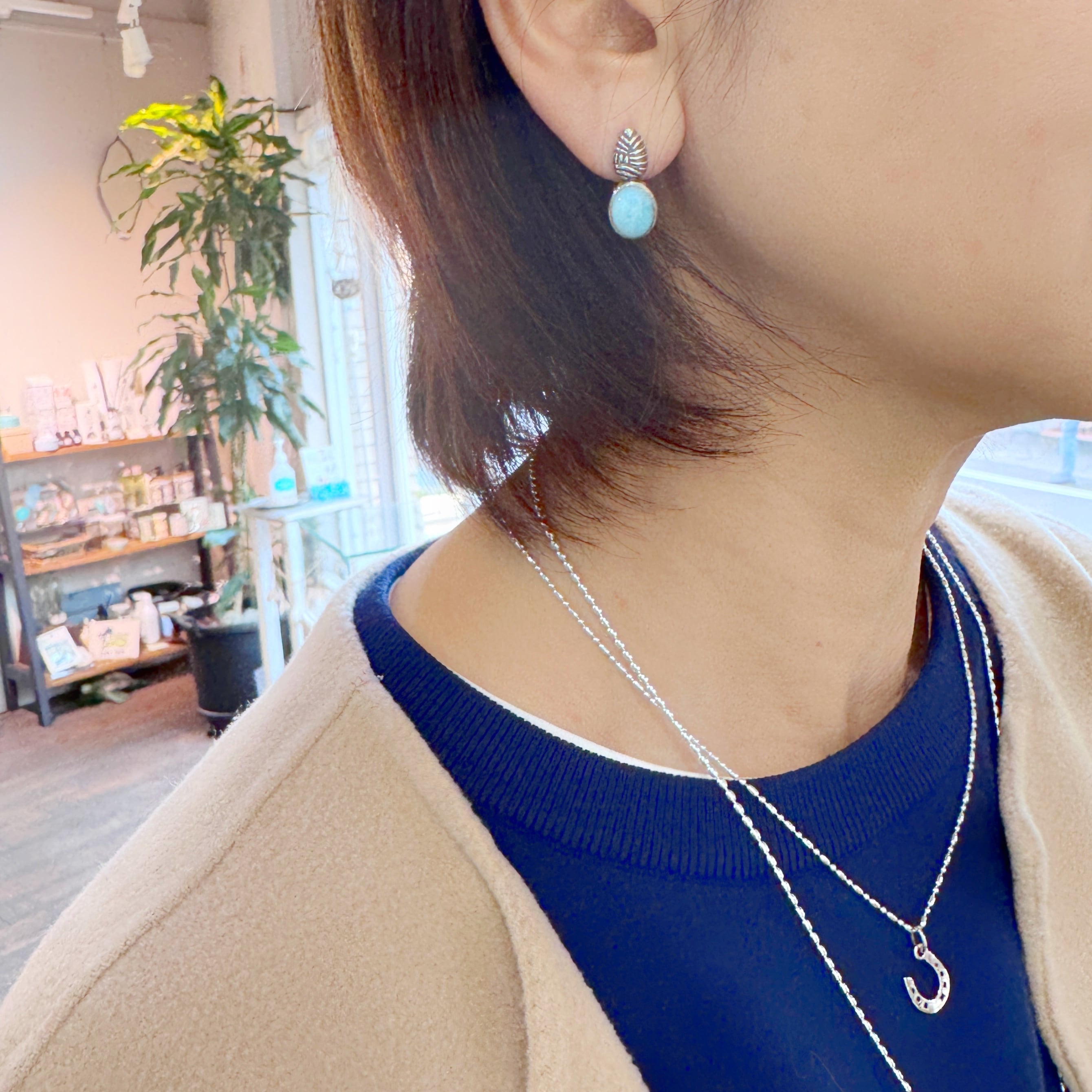 オーバル型の美しいラリマーがセットされたスタッドピアスです。