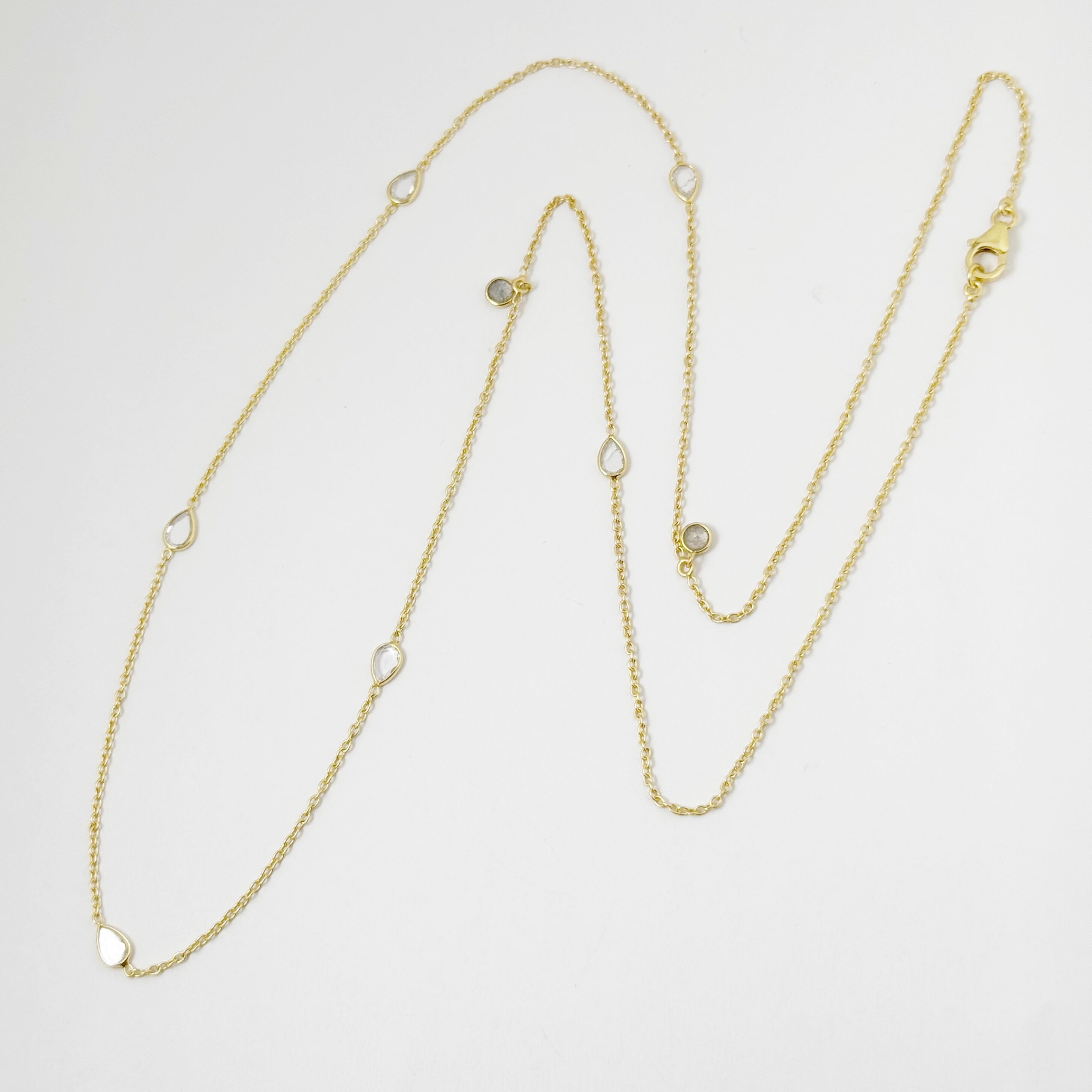 【Lagoon Original】Gold Coating 8 ストーン クリア クオーツ and ラブラドライト ロング ネックレス