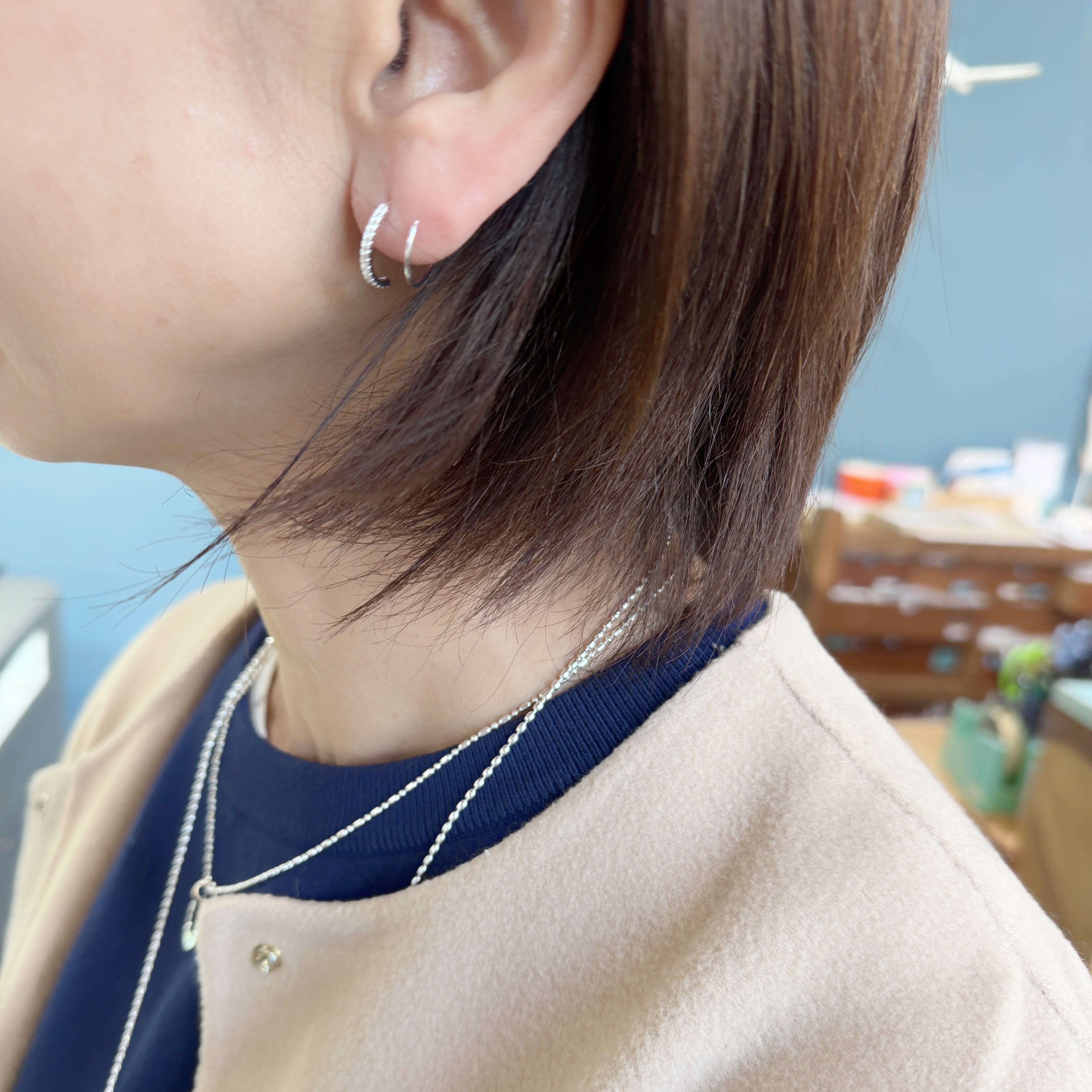 セカンドホールが開いている方は片耳に2個着けても素敵ですよ。