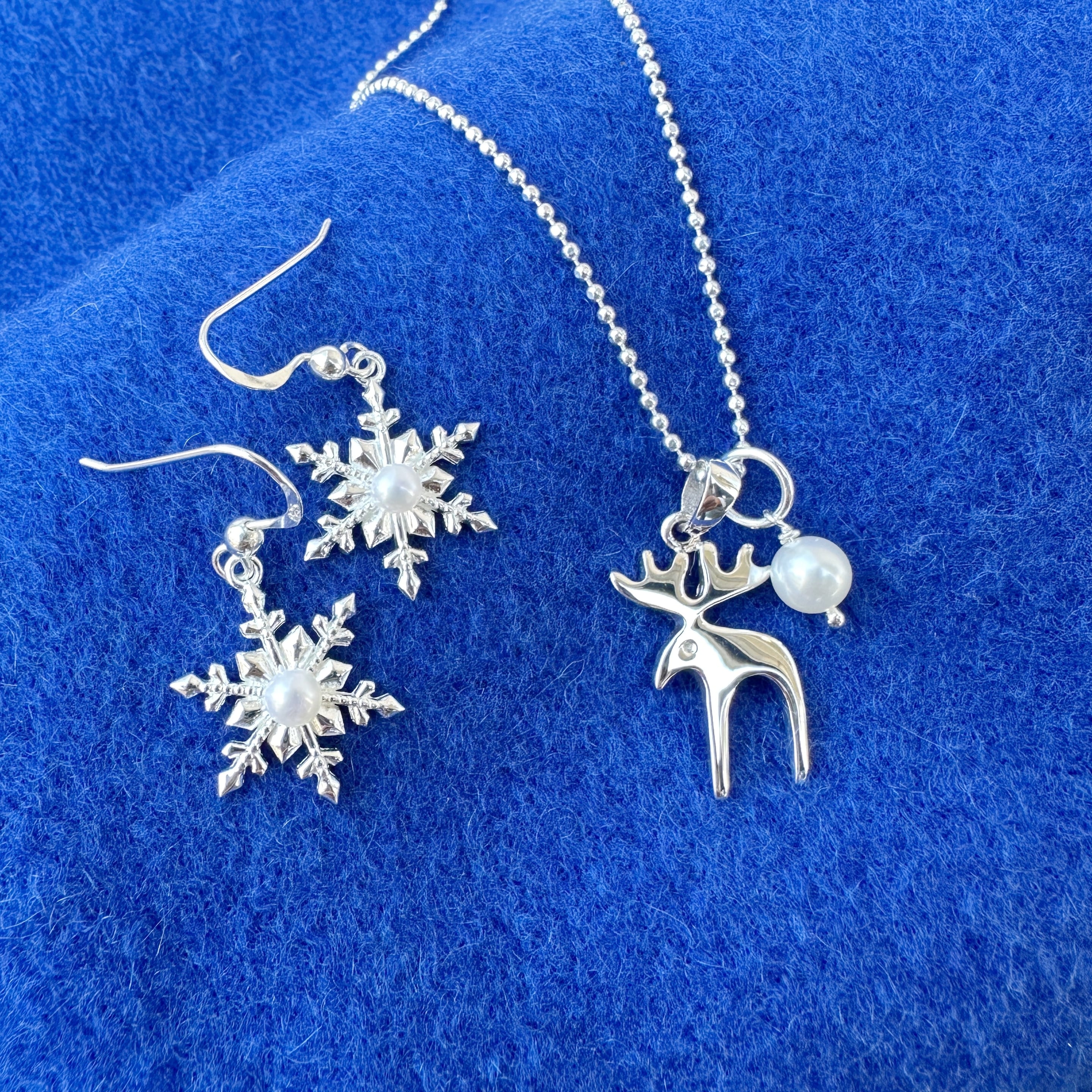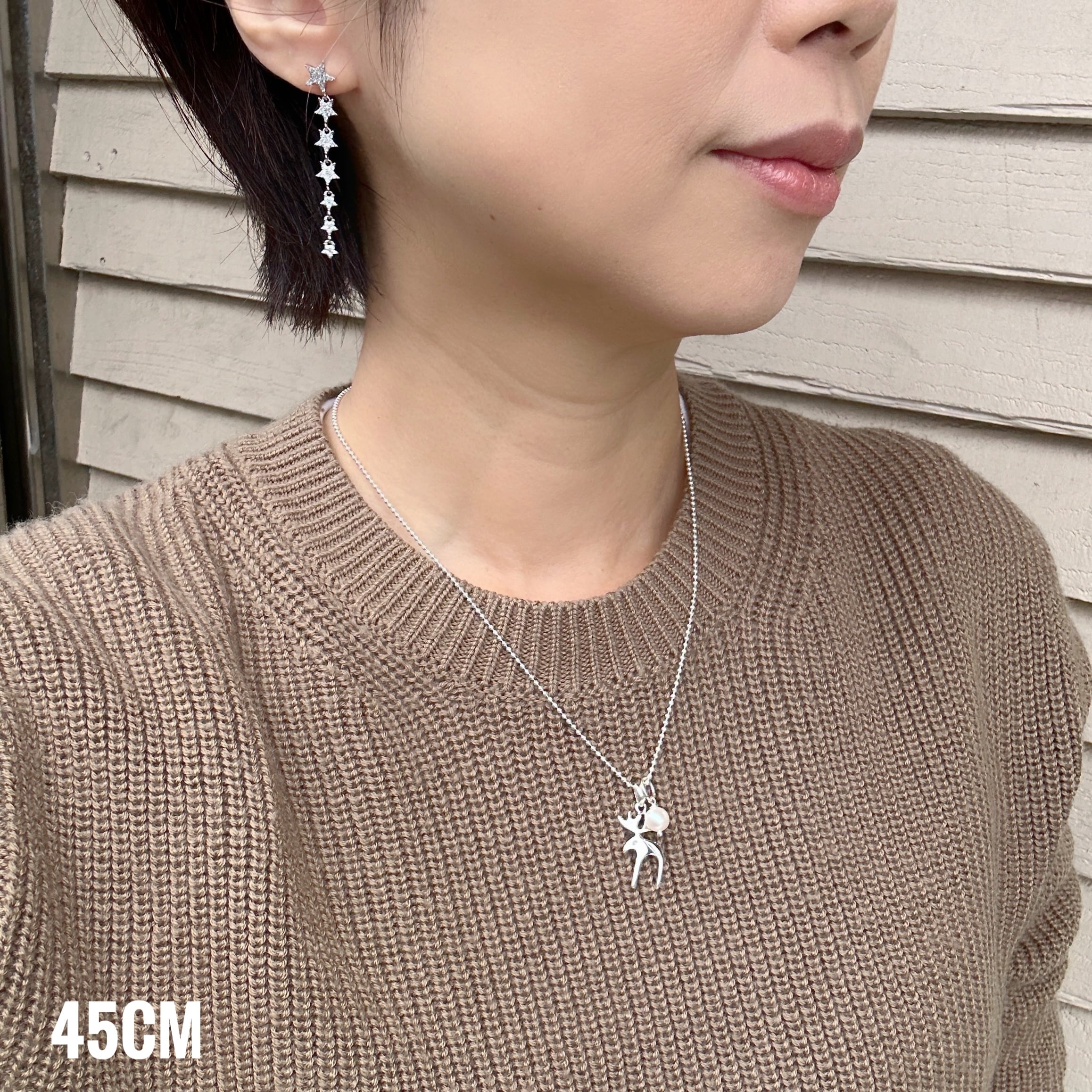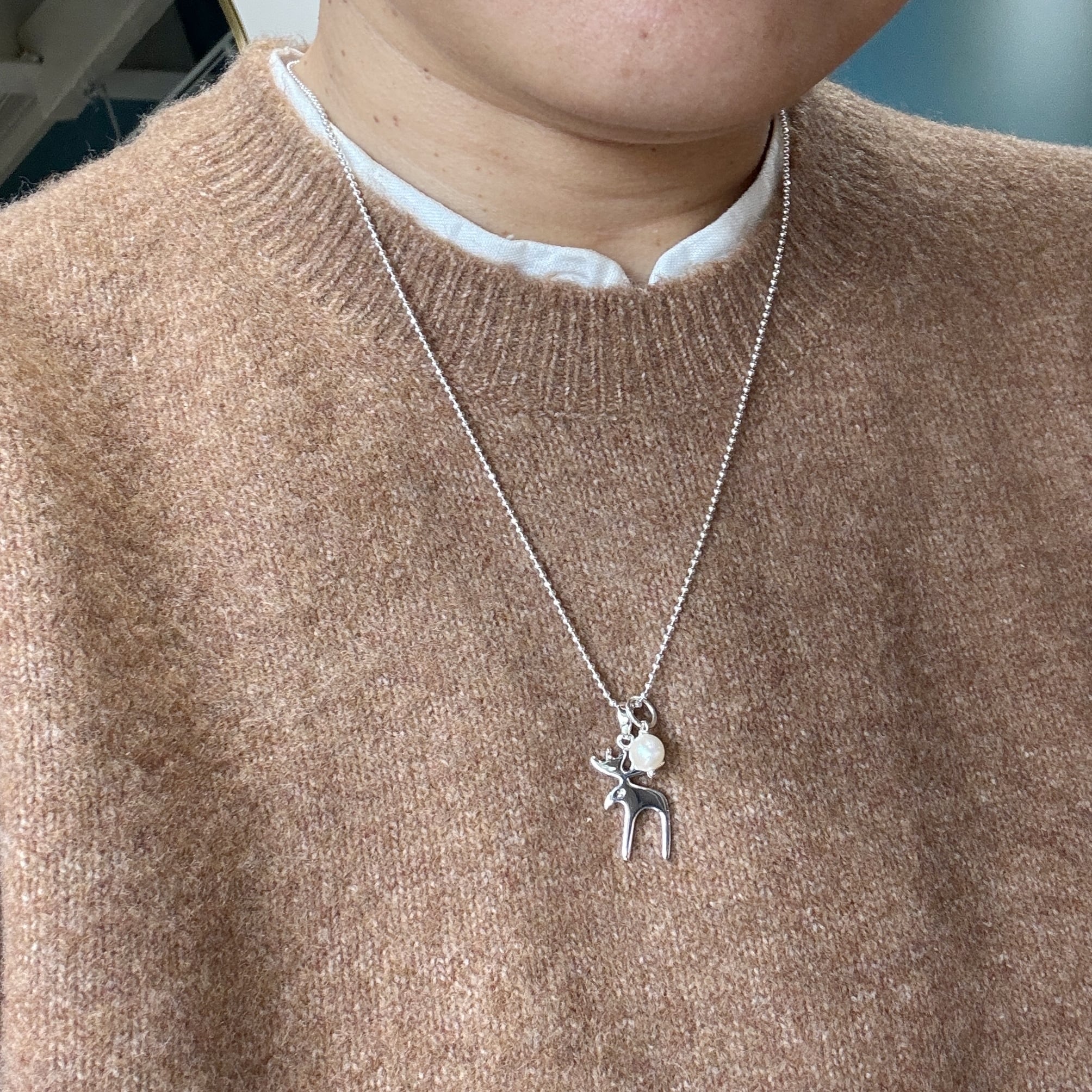ロングセラーのおとぼけトナカイのネックレスにラグーンオリジナルのちいさなパールをセットして、