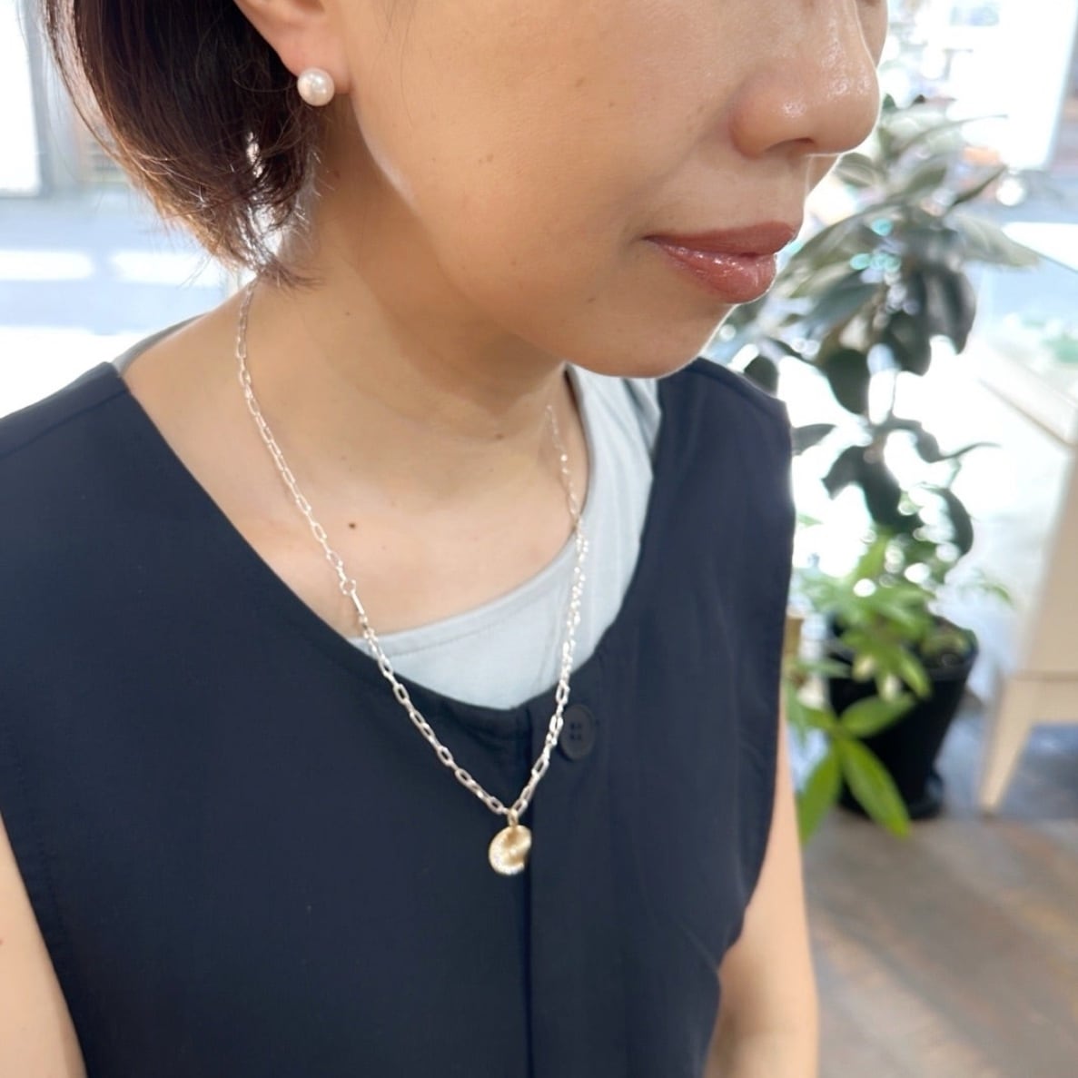 お客様のお声をもとに、パールの大きさは 0.9 cmパールの組み合わせになりました。