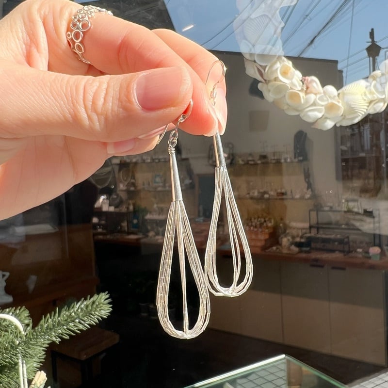 《Indian Jewelry 》リキッドシルバー 5連 HOOK ピアス 7.0cm