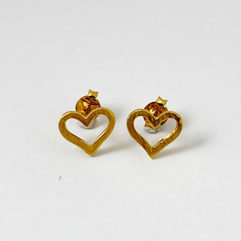 Gold Coating マットな ハート くりぬき スタッドピアス